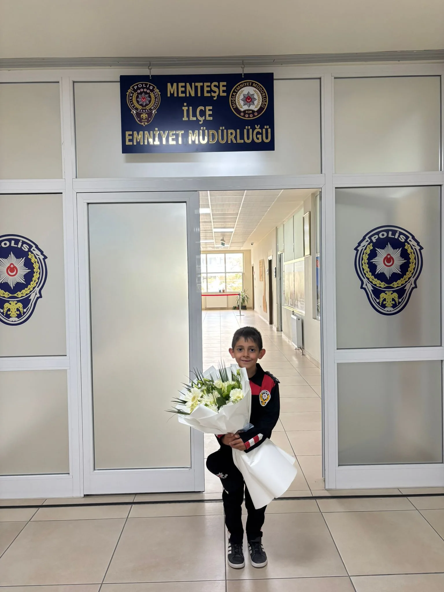 Dumlupınar İlkokulu 1-D sınıfı öğrencisi Arın Taş, Menteşe İlçe Emniyet Müdürlüğü’nde polis kıyafeti giyerek temsili olarak makama oturdu. Küçük öğrenciyi Menteşe İlçe Emniyet personeli Selma Okman karşıladı.