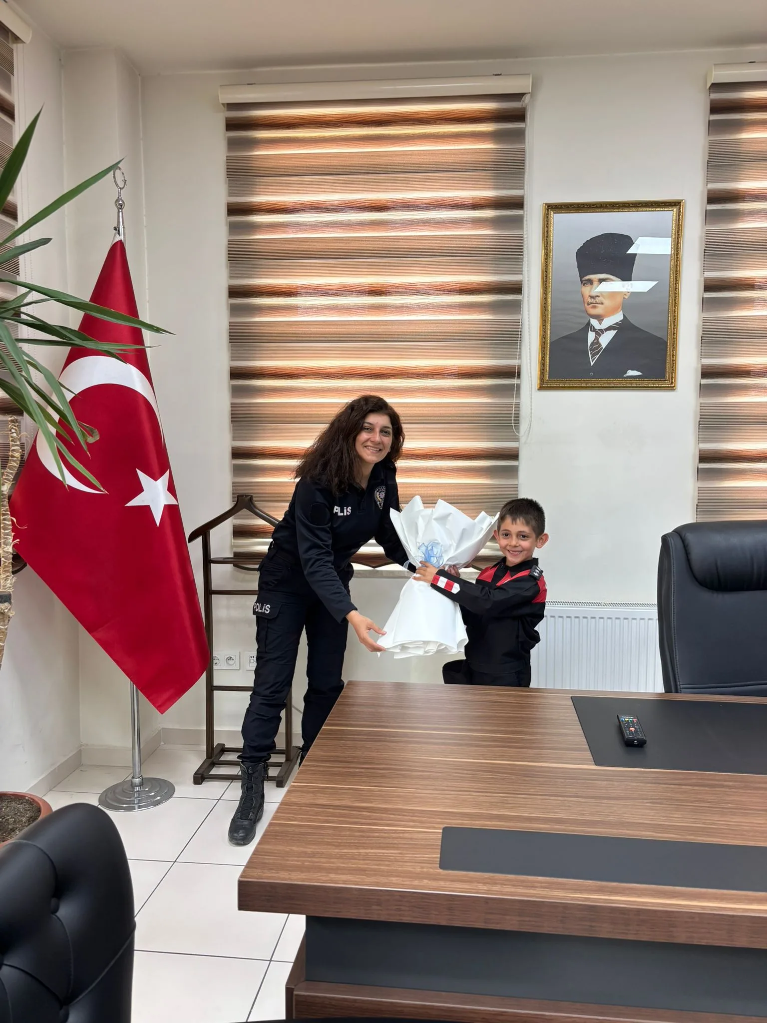 Arın Taş, ziyaret sırasında emniyet personeline çiçek takdim ederken, polislik mesleğine dair merak ettiği soruları da sordu. Temsili makam ziyareti renkli görüntülere sahne oldu.