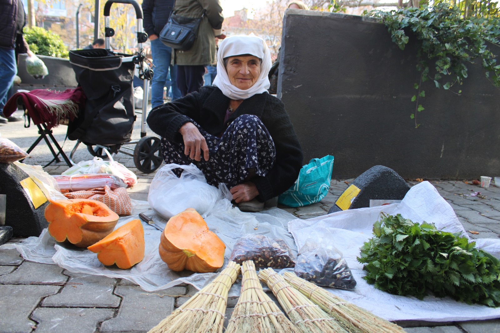 Türkmen’in el emeği süpürgeleri, pazarda alıcılarını beklerken, kendi elleriyle ürettiği her ürün, emek ve özveriyle dokunmuş bir yaşamın izlerini taşıyor.