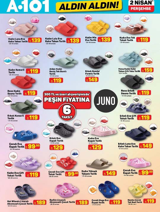 101’de bu hafta broşürü içerisinde; 125 CC maxi scooter 59.990 TL, 50″ 4K ultra HD Vidaa Tv 17.999 TL, gaming klavye 449 TL, akım korumalı 3’lü makaralı uzatma kablosu 489 TL, tüy alma makinesi 149 TL, Türk kahve makinesi 1.599 TL, rendeli metal kase set 849 TL, aynalı dekoratif sunum tepsisi 139 TL, yemek tabağı 115 TL, pasta tabağı 110 TL, emaye pişir sakla tencere 329 TL, olta sehpası 329 TL, olta kamışı 1.349 TL, lüks katlanabilir kamp sandalyesi 1.599 TL, desenli piknik sepeti izolasyonlu 25 L 449 TL, katlanabilir kamp taburesi 119 TL, balıkçı filesi 149 TL, balıkçı makası 59,50 TL, şarjlı el feneri 129 TL, reflektörlü kedi tasması 69,50 TL, şarjlı hareketli top kedi oyuncağı 199 TL, evcil hayvan eğitim pedi 10’lu 109,50 TL, spino ultra yedek parça 109 TL, plastik duvar boyası 10 KG 429 TL, tüy toplayıcı roller 64,50 TL, yastık alezi 2’li 279 TL, ortopedik boyun destekli visco 549 TL, ekose masa örtüsü 79,50 TL, büyük boy hurç 59,50 TL ile satışa çıkacak.