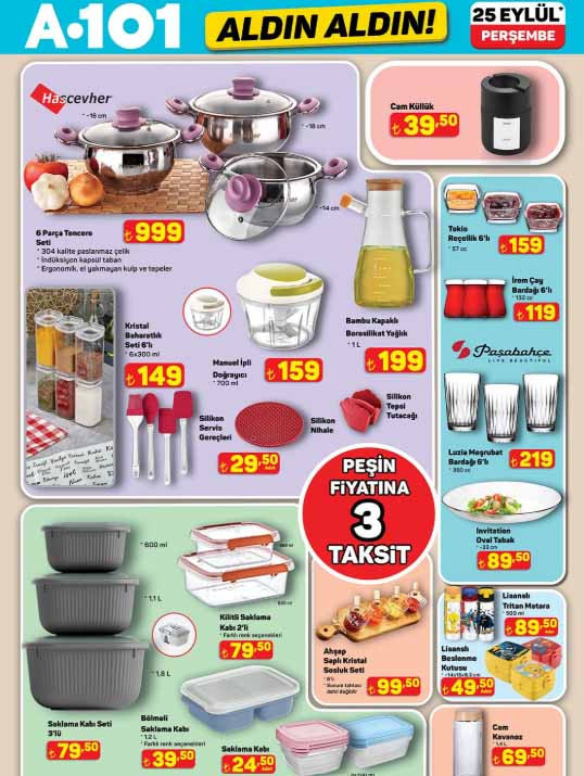 25 Eylül A101 afişi indirimleri ile yepyeni ürünler raflara geliyor. A101 aktüel ürünler kataloğu geniş yelpazede, çeşit çeşit ürünleri market raflarına getiriyor.