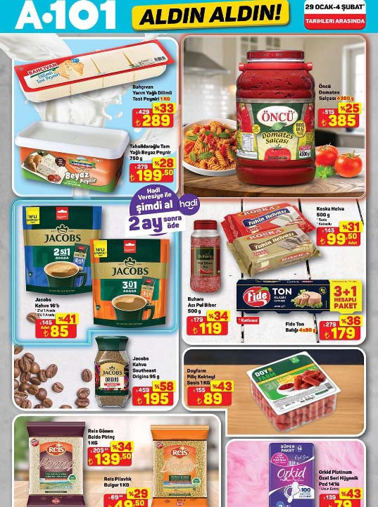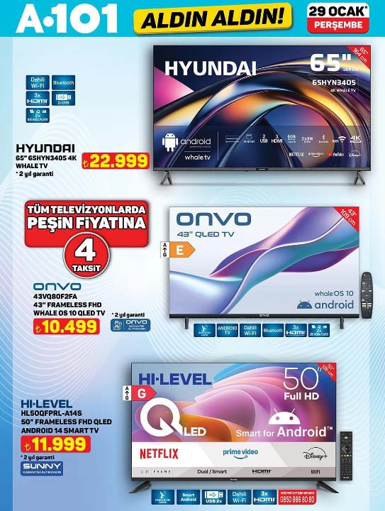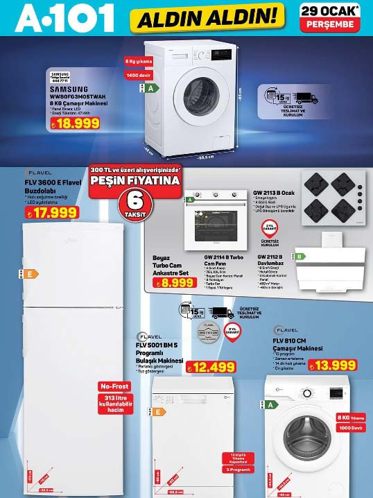 A101 afişi ile bu Perşembe günü raflarda yerini almaya hazırlanan ürünler tek tek ve tam liste paylaşıldı. 29 Ocak 2026 A101 Aldın Aldın aktüel ürünler kataloğu içerisinde Stanley termos, 3’lü beyaz ankastre seti, karavan, sabit veya taşınabilir dizel ısıtıcı, spor aletleri ve akıllı hava temizleyici en dikkat çeken katalog ürünleri arasında yer alıyor. A101 indirim broşürü ile 4.00 çekme karavan 329.000 TL, Stanley klasik model termos 2,3 L 2.799 TL, akıllı hava temizleyici 3.999 TL, 2’si bir arada narenciye sıkacağı ve salata makinesi 1.299 TL, VT5 Üç tekerlekli elektrikli moped 79.990 TL, katlanabilir şınav ve egzersiz tahtası 399 TL, buharlı temizleyici 799 TL, şarjlı kupa çekme makinesi 699 TL, 3’lü beyaz cam ankastre set 8.999 TL, metal ayaklı 3’lü zigon sehpa 999 TL, akıllı yüz takip gimbal ve tutaç 799 TL, 65 inç 4K Whale TV 22.999 TL, orta boy bavul 1.099 TL, döküm waffle tava 599 TL ile müşterilerin beğenisine sunulacak.