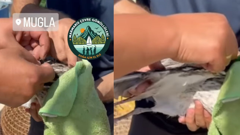 Muğla’nın Ula ilçesine bağlı Akyaka Mahallesi’nde, olta balıkçılarının bıraktığı misinaya dolanarak yaralanan bir martı çevrecilerin dikkati sayesinde ölümden döndü. Çevreci Şadi Kaptan ile Akdenizi Koruma Derneği görevlileri, kıyı şeridinde yaptıkları rutin gözlem sırasında yerde hareketsiz yatan martıyı fark etti. Yapılan incelemede, martının ayağına dolanmış misinadan dolayı hareket edemediği belirlendi.