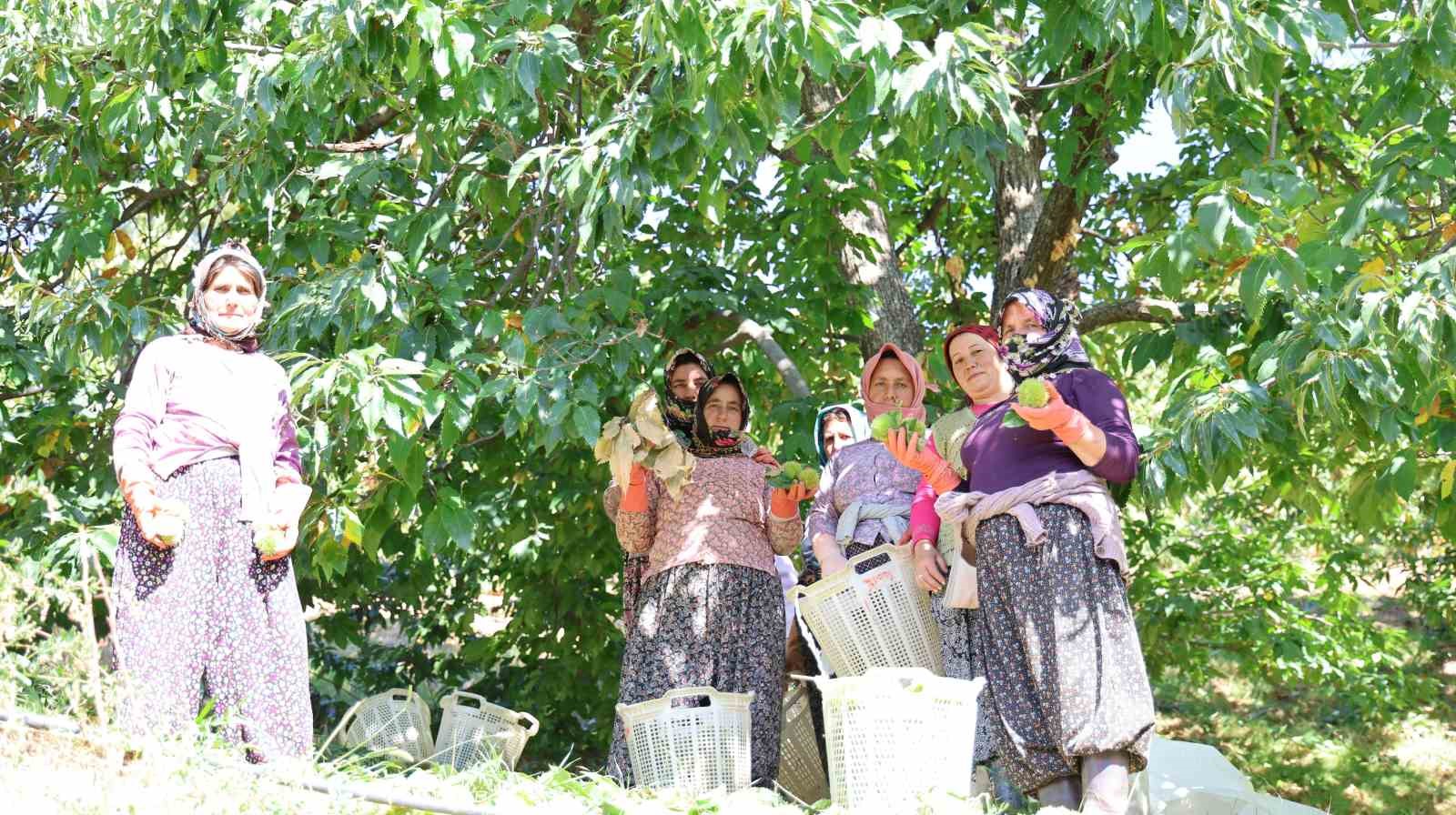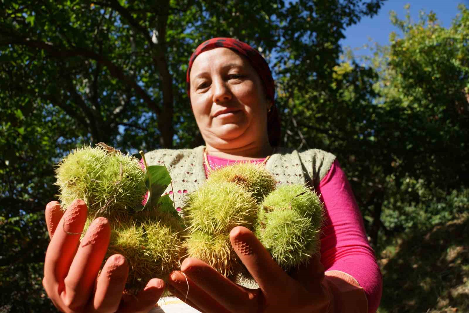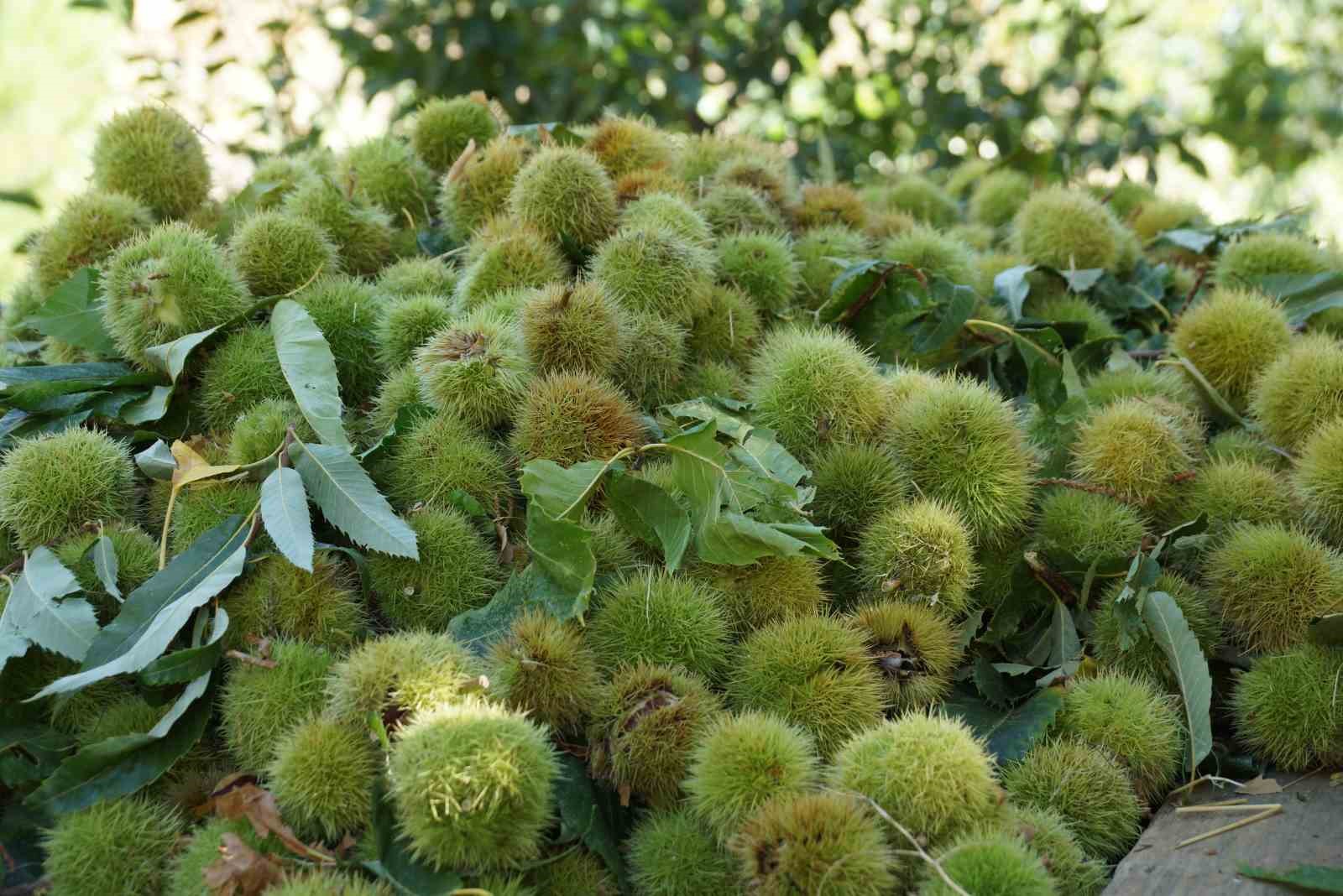 Geçen yıllara göre kestane hasadının on gün önce başladığını söyleyen kestane üreticisi Metin Yağcı, “Son dönemde az da olsa görülen yağışla birlikte ağaçlar kendini besledi, olgunluğunu tamamladı ve yıl hasat sezonu biraz erken geldi. Bu uğraş biraz zor bir iş, bakım isteyen bir iş. Kestane, hemen oluveren, sofraya hızlıca gelen bir ürün değil. Önce kestaneyi ağaçtan dökeriz, gömü dediğimiz yere dökeriz. Orada bekleme süresi var, 10 gün ile 20 gün arasında. Kabuğu nemli havada daha çabuk çürür. Daha sonra kabuğu soyulduktan sonra depolara gider ve boylama yapılır. Nereye gidecekse bir kilodan bir tona kadar ambalajlama işlemi yapılır. Kestane fabrikalarında işlenir ve ihracata gider” dedi.