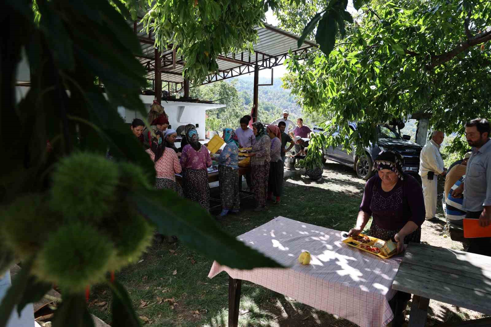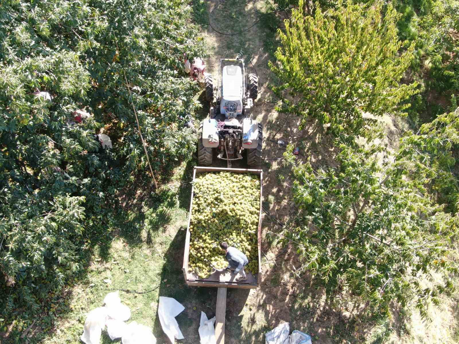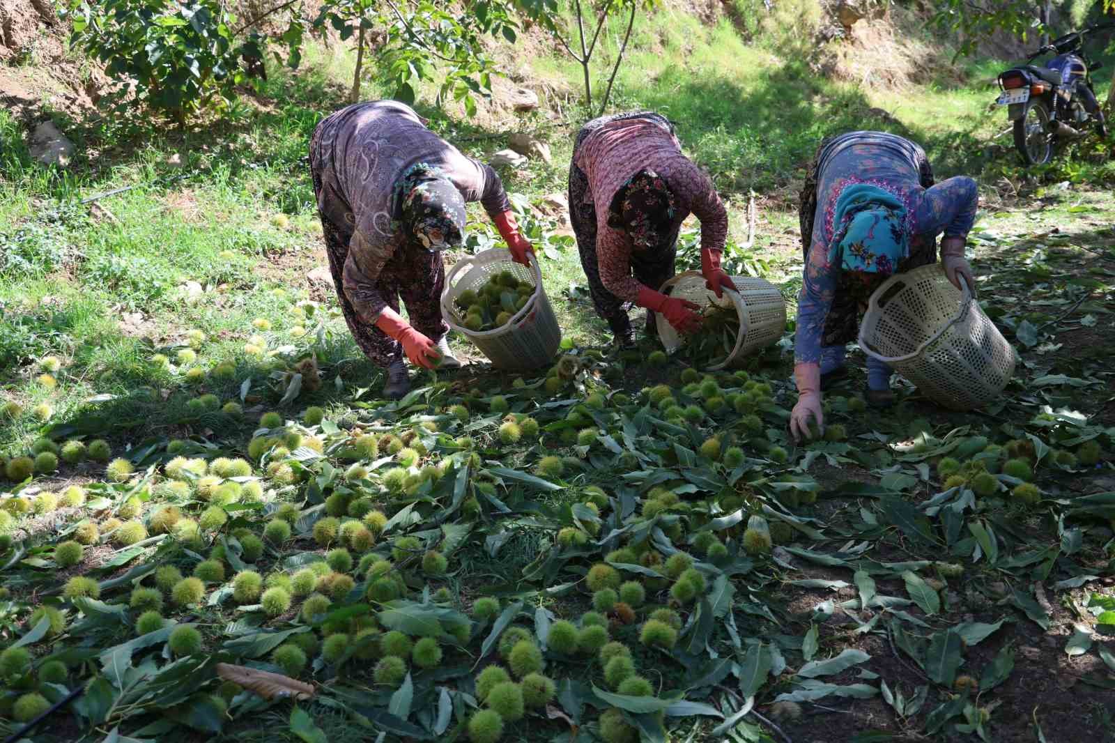 Geçen yıllara göre kestane hasadının on gün önce başladığını söyleyen kestane üreticisi Metin Yağcı, “Son dönemde az da olsa görülen yağışla birlikte ağaçlar kendini besledi, olgunluğunu tamamladı ve yıl hasat sezonu biraz erken geldi. Bu uğraş biraz zor bir iş, bakım isteyen bir iş. Kestane, hemen oluveren, sofraya hızlıca gelen bir ürün değil. Önce kestaneyi ağaçtan dökeriz, gömü dediğimiz yere dökeriz. Orada bekleme süresi var, 10 gün ile 20 gün arasında. Kabuğu nemli havada daha çabuk çürür. Daha sonra kabuğu soyulduktan sonra depolara gider ve boylama yapılır. Nereye gidecekse bir kilodan bir tona kadar ambalajlama işlemi yapılır. Kestane fabrikalarında işlenir ve ihracata gider” dedi.