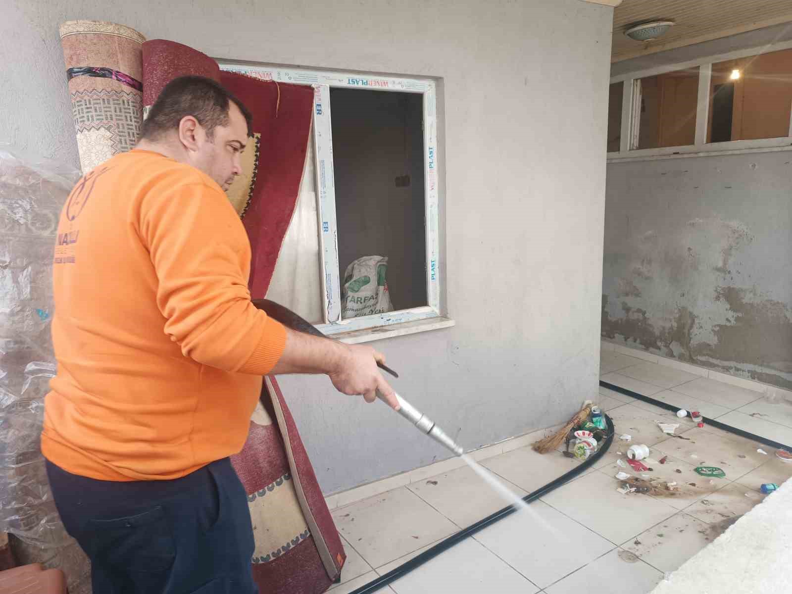Gerçekleştirilen temizlik çalışmasında 4 kamyon dolusu çöp çıkartılırken çalışmanın tamamlanmasının ardından mikrop ve haşerelere karşı ilaçlanan ev, kullanılabilir hale getirildi.