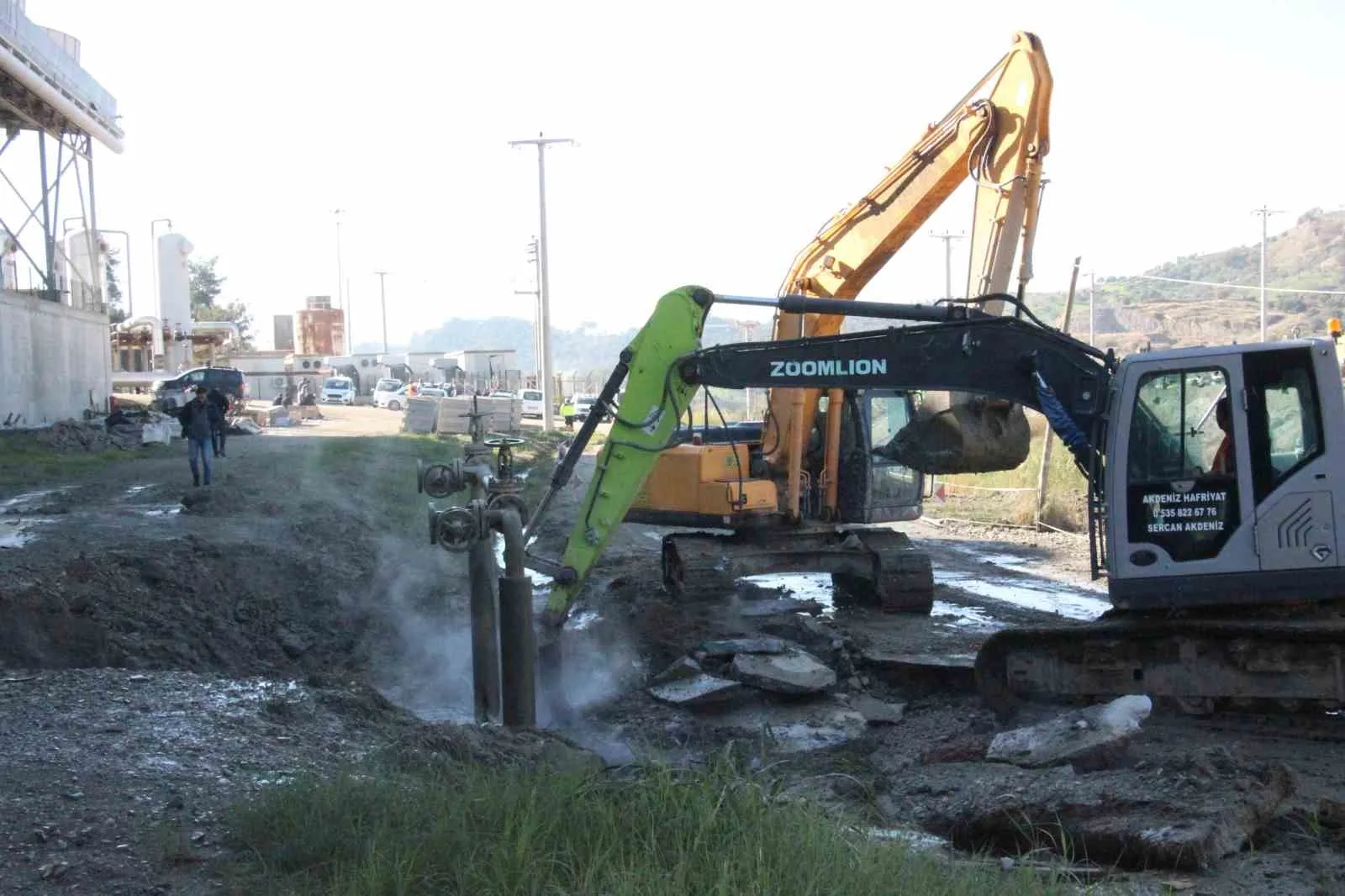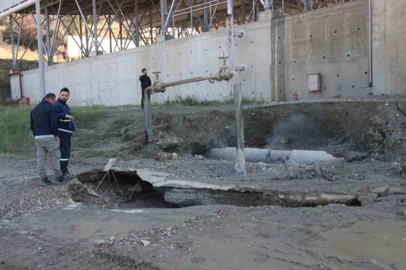 Aydın’ın Germencik ilçesinde Bozköy yolu üzerindeki jeotermal akışkan iletim hattında meydana gelen patlama yolda tahribata neden olurken, iddiaya göre yaklaşık 170 derece sıcaklıktaki su çevreye yayıldı.