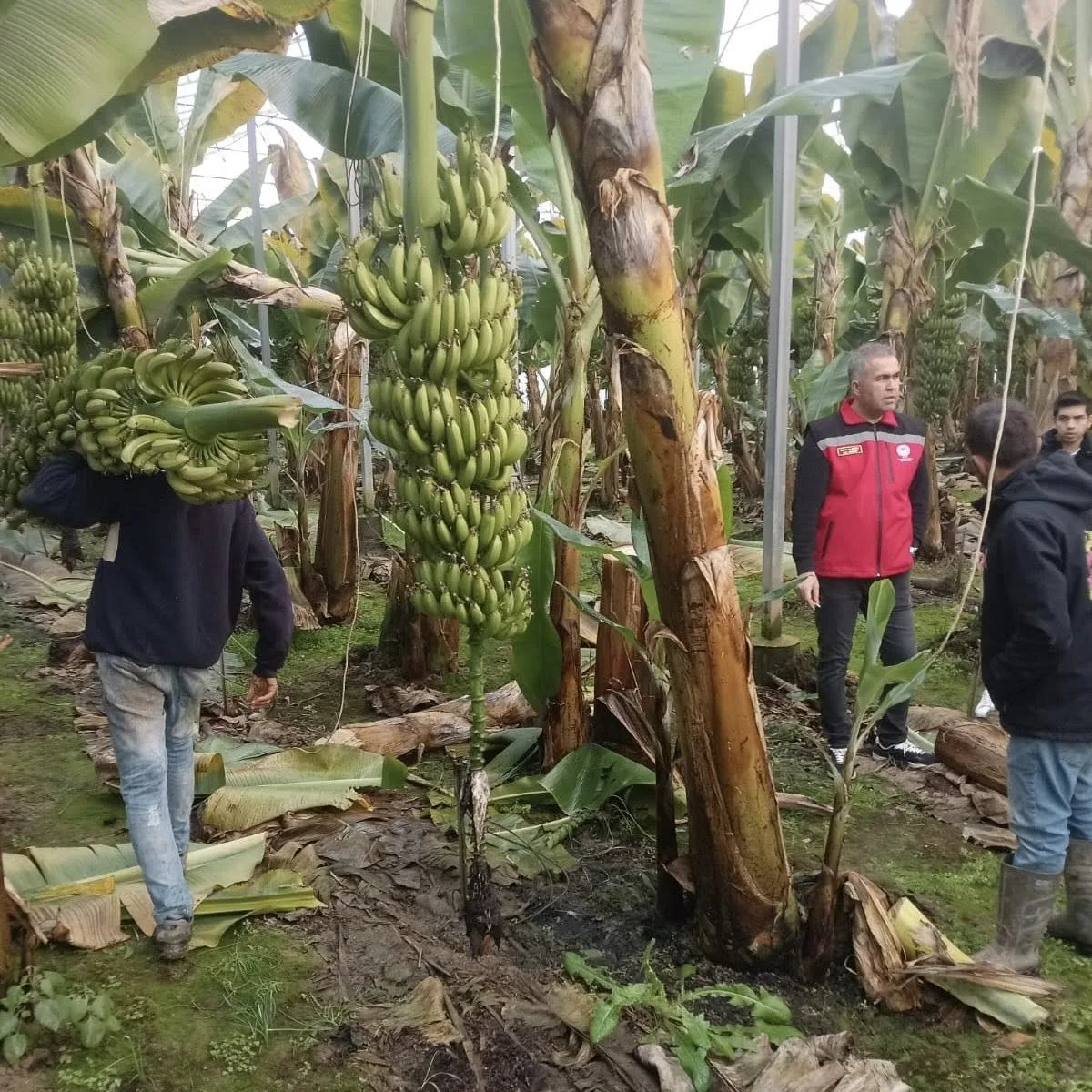 Aydın’ın Efeler ilçesindeki Dalama Mahallesi’nde Hakan Özer’in 4 dekarlık muz bahçesinde hasat yapıldı. 700 ağacın bulunduğu bahçede, sezon boyunca 26-27 ton muz elde edilmesi bekleniyor. Hasada katılan Mehmet Esen, üreticiyle birlikte çalışarak başarılar diledi. Özer, ürünlerini TARSİM sigortasıyla güvence altına almış.