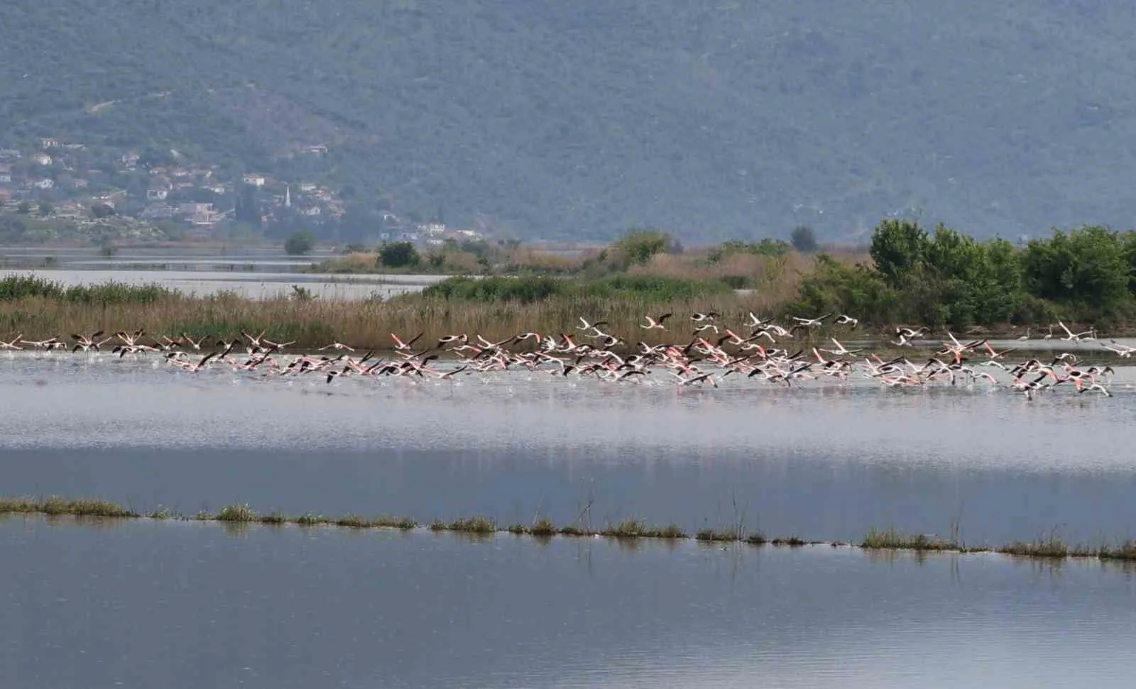 İlk kez böyle bir manzara ile karşılaştığını ifade eden Burunköy Mahallesi sakinlerinden Barış Karmacı; “Flamingolar çok nadir olarak böyle gelirler. Yağışlardan dolayı şimdi buradalar sanırım. Menderes taştı, bazı noktalardan patlak verdi. Flamingolar bu şekilde bana hiç denk gelmemişti. Sular taşınca flamingolar buraya gelmeye başladı. Buralar tarlaydı. Taşkın olunca, göle döndü. Deniz gibi oldu. Daha sonra su kuşları geldi” dedi.