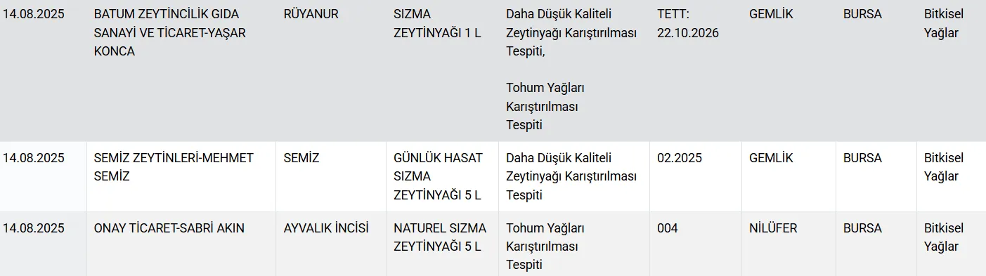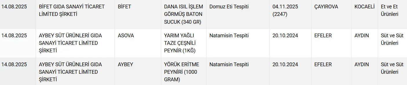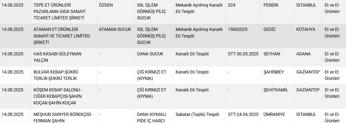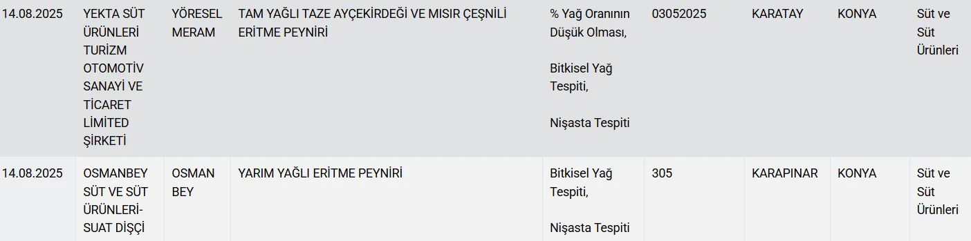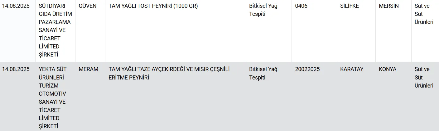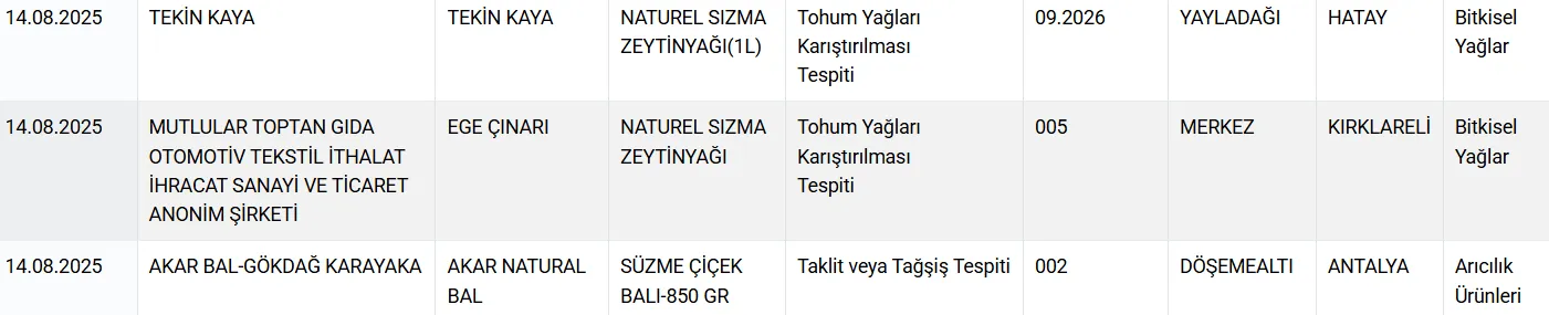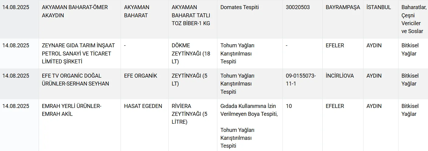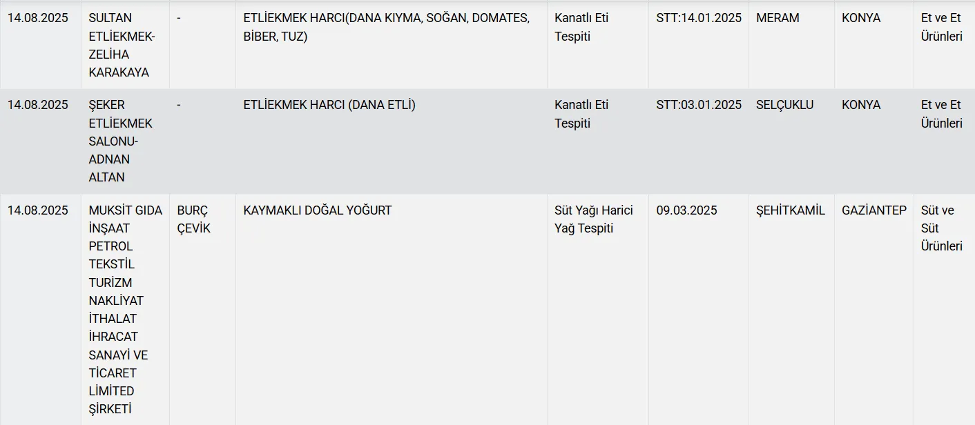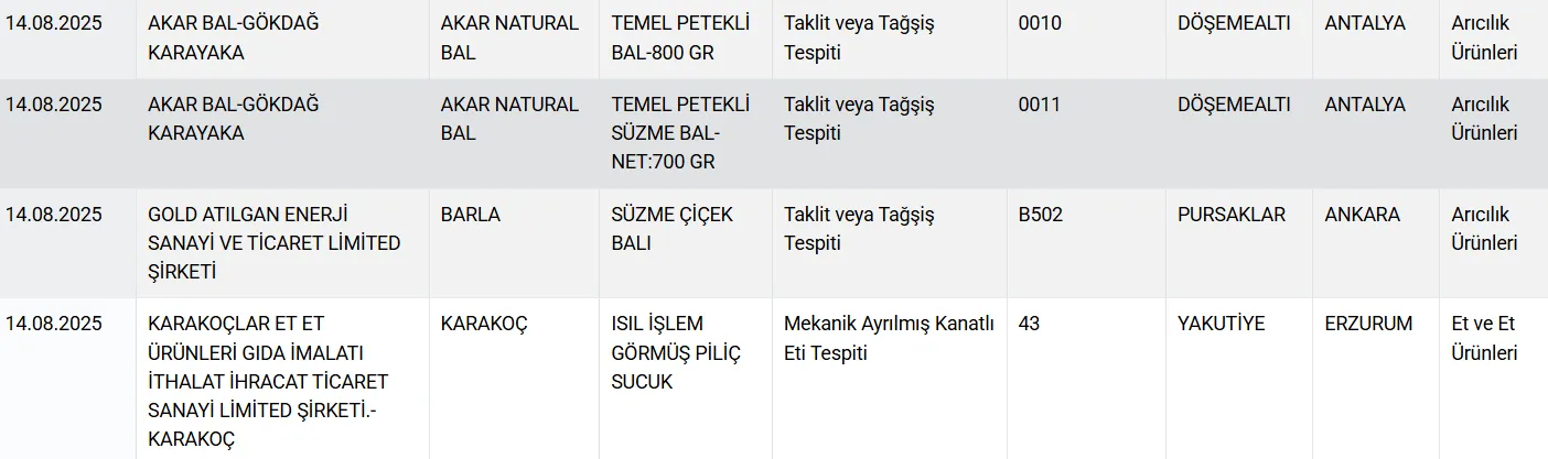 Bakanlığın açıkladığı son listede, içeriğiyle oynanmış ve hileli ürünler satan firmaların isimleri yer alıyor. Bu denetimlerle, ürünlerin etiket bilgilerine aykırı üretim yapan, içeriğine farklı maddeler karıştıran ve bu yolla tüketicileri yanıltan işletmelerin faaliyetleri ortaya çıkarılıyor.