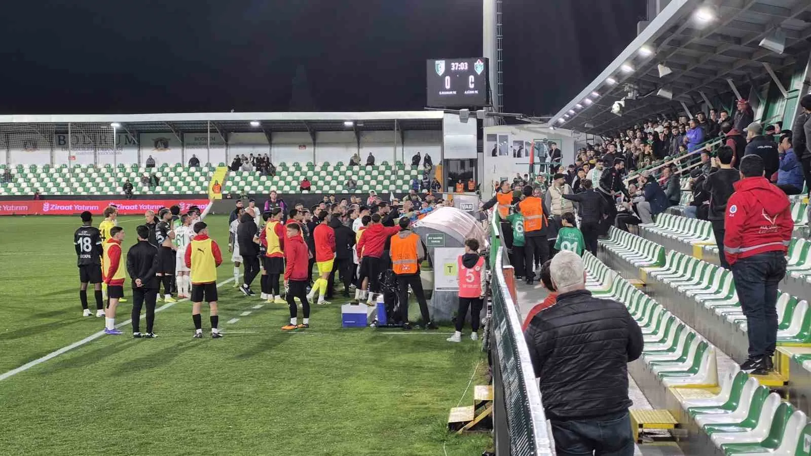 Ziraat Türkiye Kupası’nda Iğdır FK ile golsüz berabere kalarak turnuvaya veda eden Bodrum FK’da, tribünden yükselen ırkçı saldırıya karşı taraftarın sergilediği sağduyulu duruş ve emniyetin anında müdahalesi maçın önüne geçti.