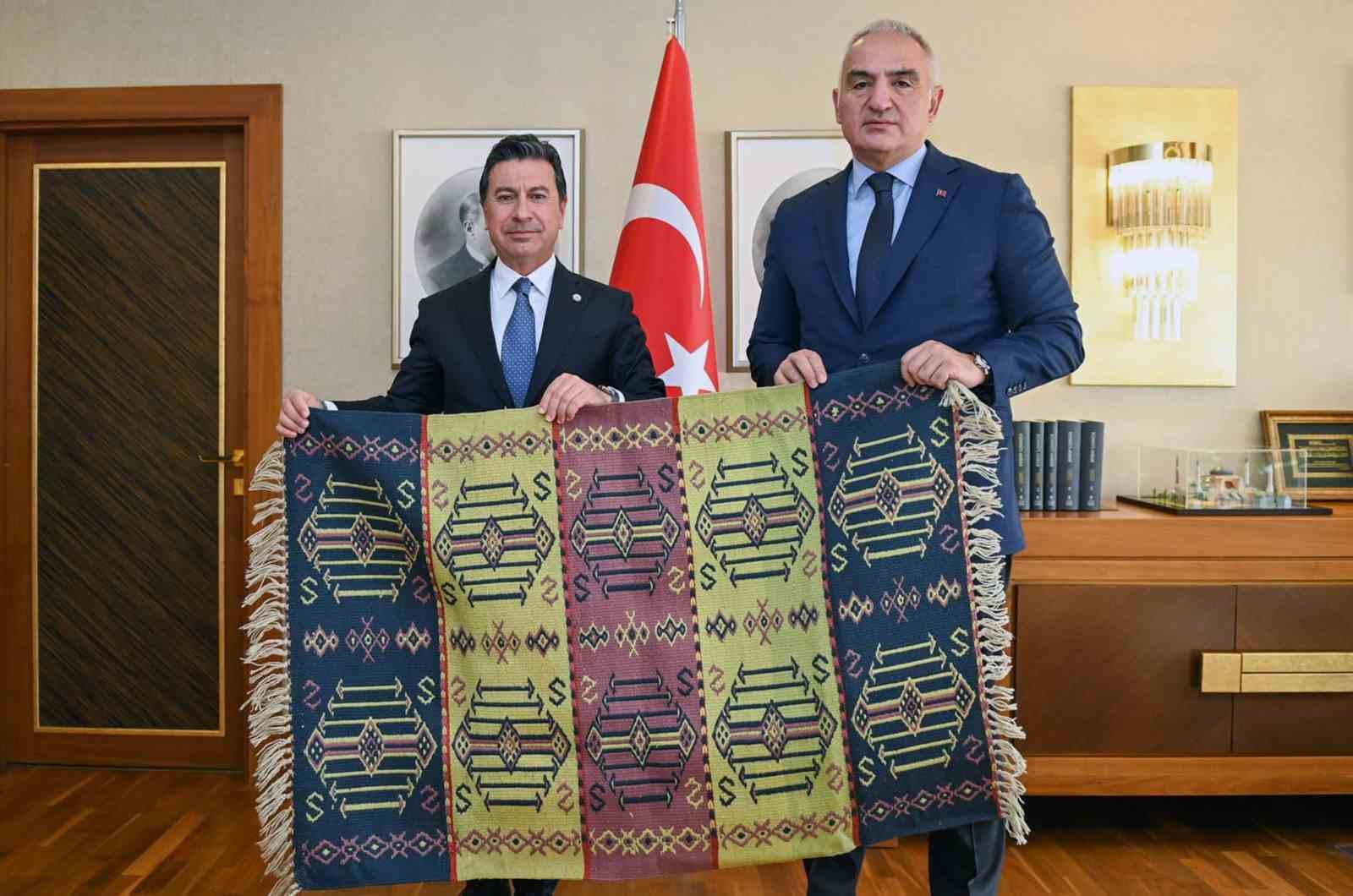 Yılık 3 milyon 500’ü yabancı ve yaklaşık 5 milyon da yerli turisti ağırlayan Muğla için ‘Dünya Kenti Muğla’ vizyonunu anlatmak için Bakan Ersoy ile bir araya geldiğini belirten Muğla Büyükşehir Belediye Başkanı Ahmet Aras, “Muğla’mızda yaptığımız ve bakanlığımız ile ortak yapabileceğimiz çalışmalar üzerine konuştuk. Altyapı, turizm, tanıtım konularının yanı sıra Dünya Kenti Muğla vizyonumuzu da Sayın Bakanımıza aktararak işbirlikleri üzerine görüş alış verişinde bulunduk. Sayın Ersoy’a Milas’ımızın el emeği kilimini ve Muğla’mızın tarihi ve kültürünü yansıtan hediyemizi de takdim ettim” dedi.