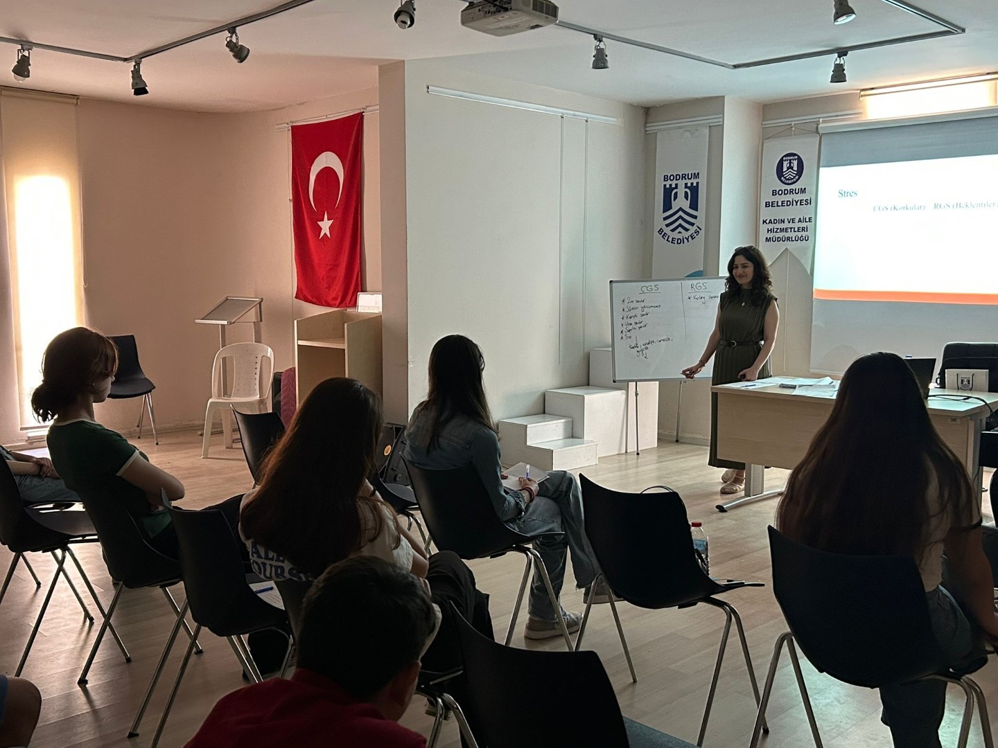Bodrum Belediyesi Kadın ve Aile Hizmetleri Müdürlüğü tarafından Turgutreis’te 27 Nisan Pazar günü ortaokul öğrencilerine yönelik organize edilen seminer sonrası 4 Mayıs 2025 Pazar günü saat 13.00’te Bodrum Belediyesi Şevket Sabancı Kültür ve Sanat Merkezinde lise son sınıf öğrencilerine seminer gerçekleşti. Müdürlükte görevli Klinik Psikolog Meryem Seray İlter tarafından verilen seminerde; stres, stresin etkileri, stresle baş etme yöntemleri, rahatlama teknikleri, zaman yönetimi ve sınavdan önce- sonra yapılacaklar üzerine konuşuldu.