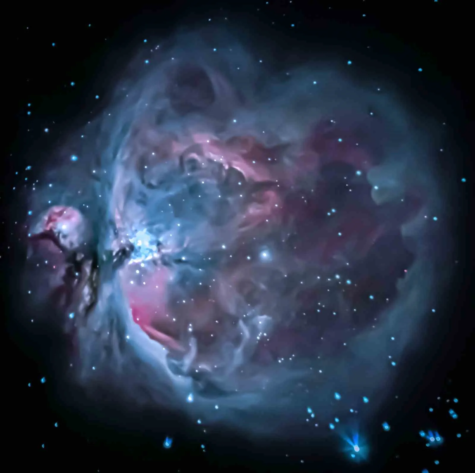 Dr. Cihan Önen, Bitlis’in düşük ışık kirliliğinden faydalanarak 1500 ışık yılı uzaklıktaki Orion Bulutsusu’nu karlı dağ zirveleriyle birlikte eksi 4 derecede 4 saatlik bir çalışmayla görüntüledi.