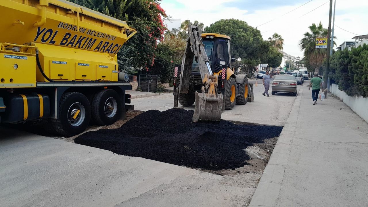 Bodrum Belediyesi Fen İşleri Müdürlüğü ekipleri, ilçe genelindeki cadde ve sokaklarda yol bakım, onarım, tamirat çalışmaları ile yağmur suyu hattı temizliklerine devam ediyor