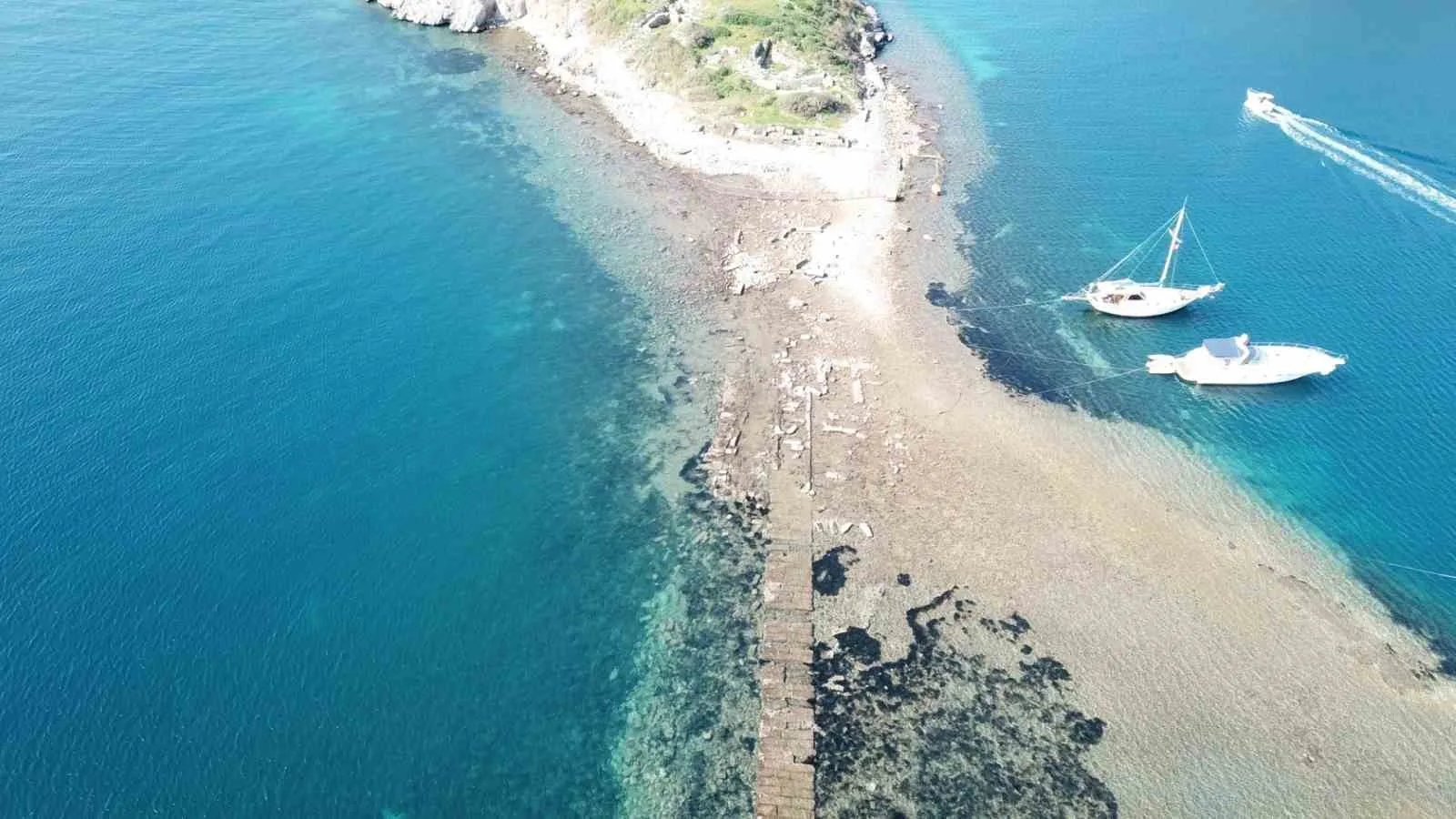 Muğla’nın Bodrum ilçesinde denizin aniden çekilmesiyle binlerce yıllık tarih yeniden gün yüzüne çıktı. Gümüşlük koyunda suların geri çekilmesiyle, antik Mydos kentine uzanan yaklaşık 3 bin 500 yıllık kral yolu yeniden ortaya çıktı.