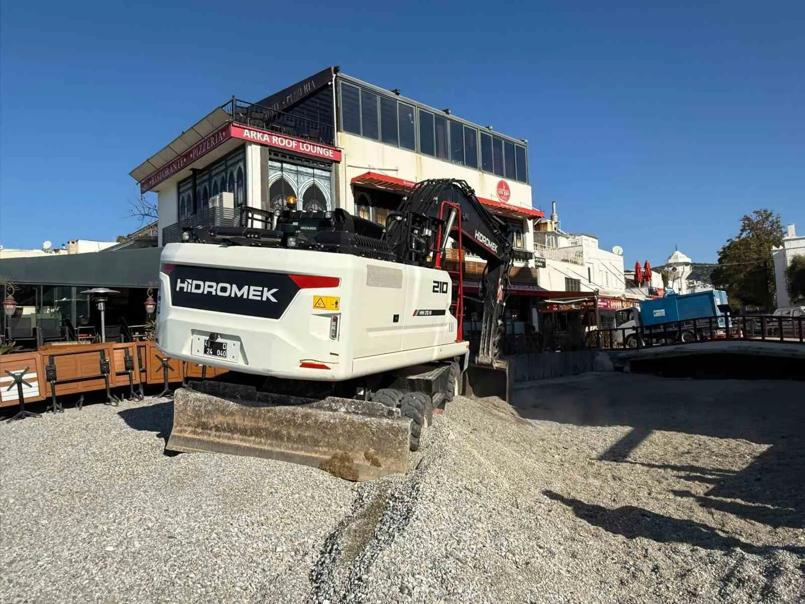 Muğla’nın Bodrum ilçesinde Kumbahçe sahilinde, kamusal alanlardaki işgallerin kaldırılması için başlatılan çalışmalar sürüyor. Ekipler, Azmakbaşı mevkisinde bir işletmenin dere yatağına yaptığı beton su basmanını iş makineleriyle kaldırdı.