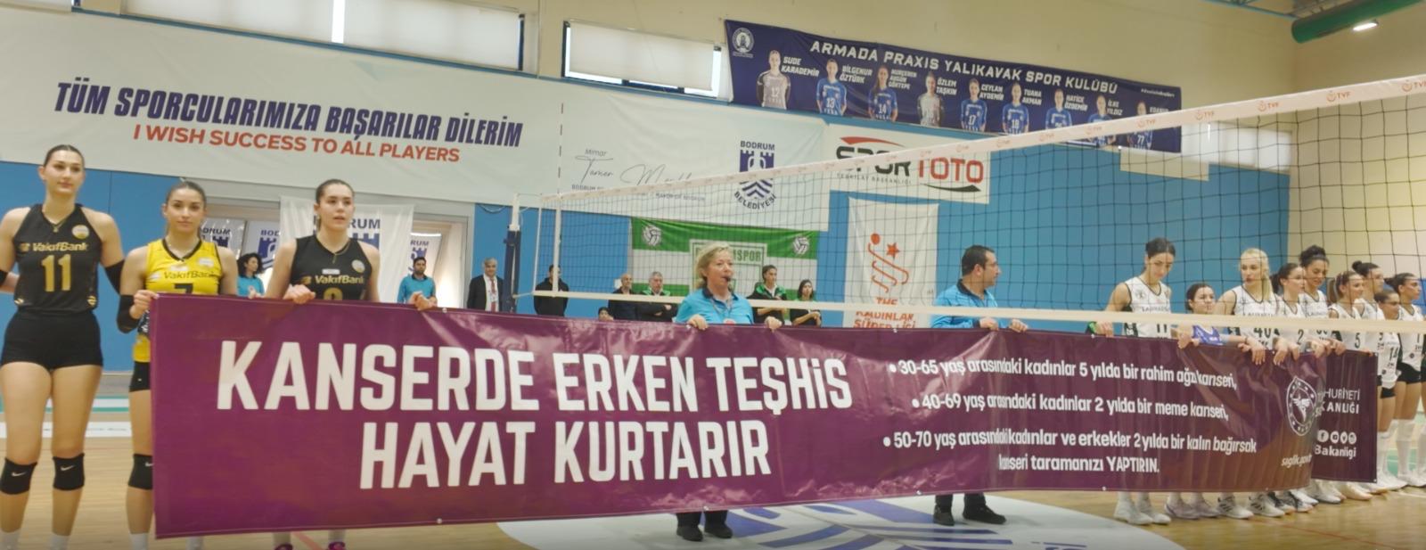 Bu çerçevede, 1 Şubat 2025 tarihinde oynanan Bodrum Belediyesi Bodrumspor – Vakıfbank KFC Kadınlar Voleybol 1. Lig karşılaşmasında Bodrumspor oyuncuları, sahaya “Kanserde Erken Teşhis Hayat Kurtarır” pankartı ile çıktı.