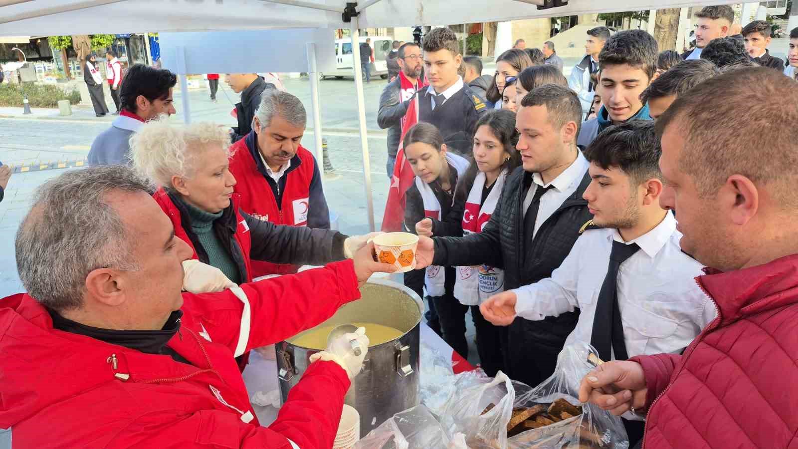 Meydandaki tören sonrası şehit olan Mehmetçikler için lokma ve Kızılay tarafından çorba ikramı yapıldı.