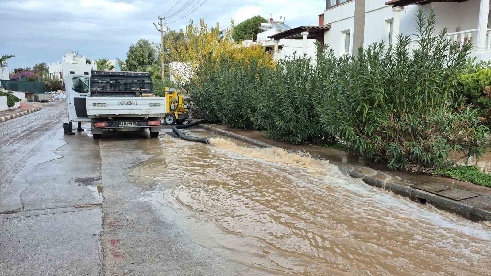Muğla’nın Bodrum ilçesinde gece saatlerinde etkili olan sağanak yağıştan etkilenen bölgelerde su tahliye ve temizlik çalışmaları sürüyor. İlçede toplam 60 ev ve 2 işyerini su bastı.