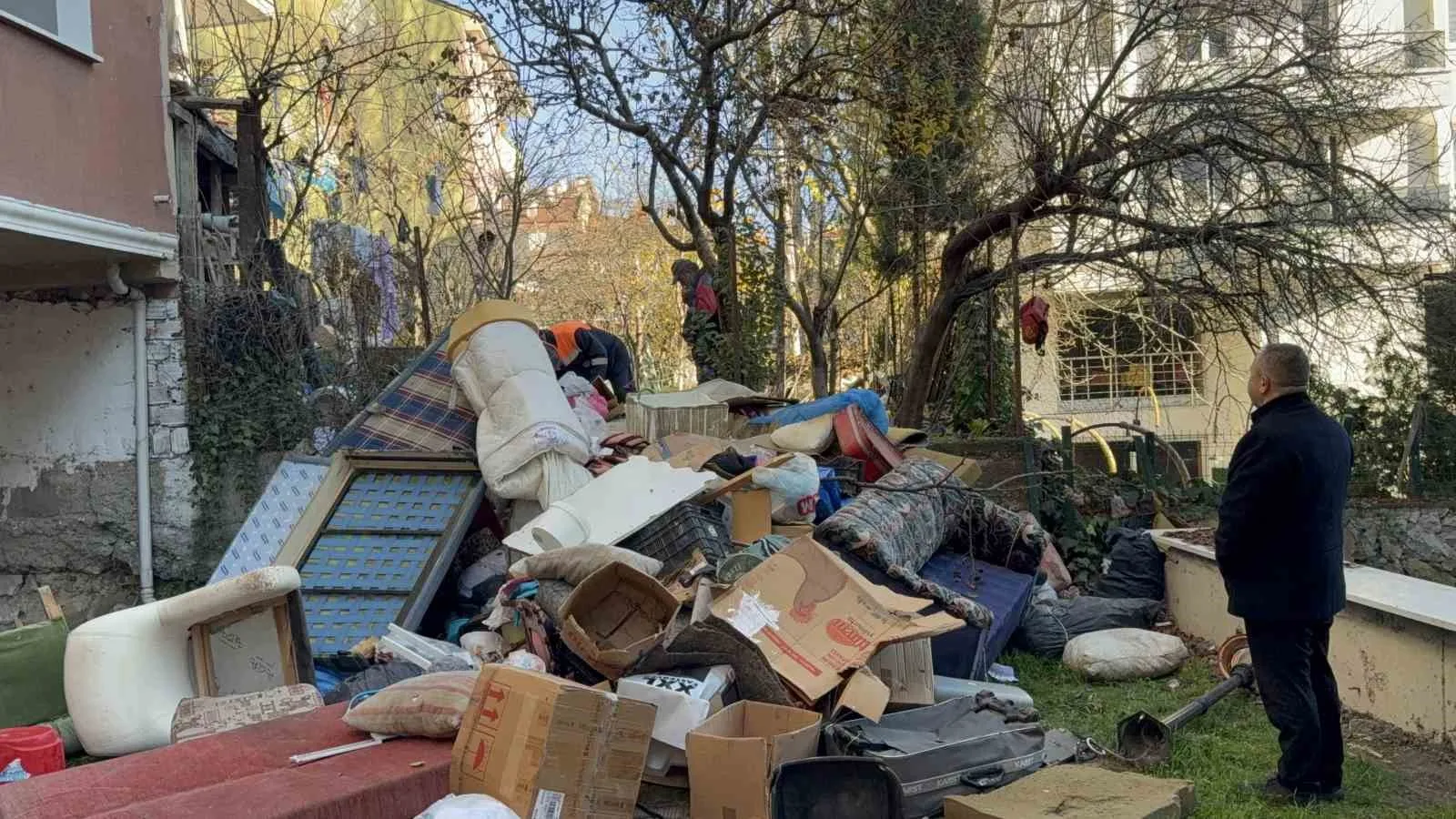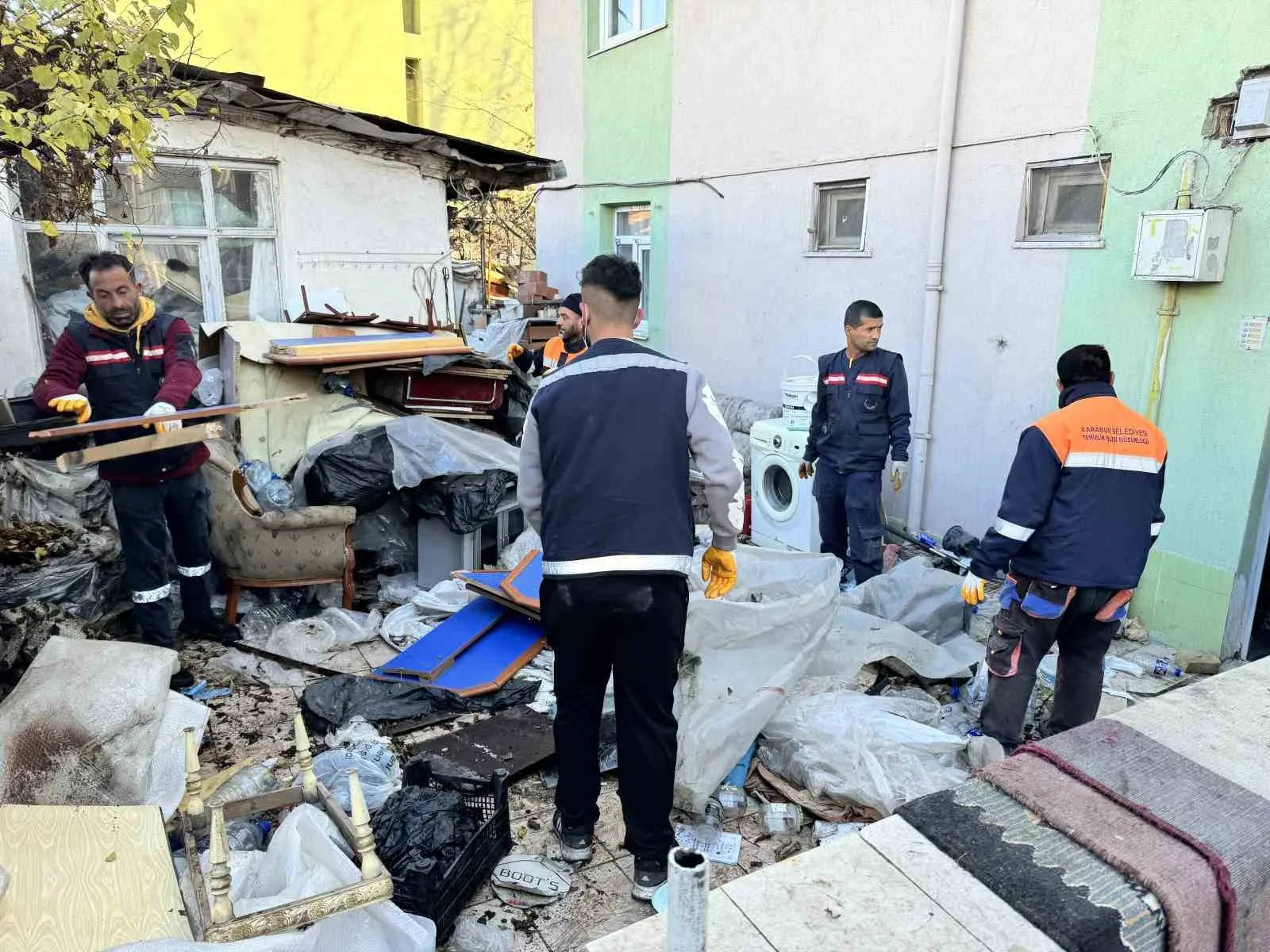 Karabük’te mahalle sakinlerinin ihbarı üzerine bir eve giden belediye ekipleri, ev ve bahçeden yaklaşık 10 kamyon çöp çıkardı.