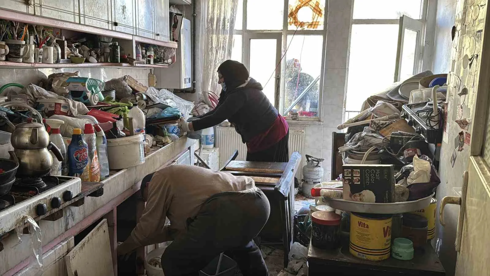 Odalar içinde biriken çöplerin kullanım alanlarını tamamen kapladığı, hijyen şartlarının ortadan kalktığı belirlendi. Evin bahçesi ve bina çevresinin de çöplerle kaplı olduğu görüldü.