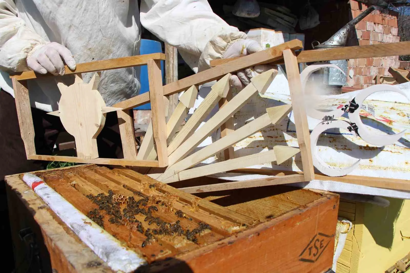 Eşi ve oğluyla birlikte 3 yıl önce arıcılık kursunda aldığı eğitim sonrası Yazı Bağları Mahallesi’ndeki evinin bahçesine kovanlar yerleştiren Hüseyin Çalışkan, hobi olarak arı yetiştirmeye başladı. İçinde binlerce arının bulunduğu kovanlarının sayısı 35’e ulaşan evli ve 2 çocuk babası Çalışkan, en kaliteli balı yetiştirmeye çabalarken bir kovandaki petek çıtalarına da şekil vermeyi planladı. Siyasetteki rekabeti kovana da taşımak isteyen Çalışkan, AK Parti’nin ampul, CHP’nin altı ok ve MHP’nin üç hilal amblemiyle 3 çıtayı şekillendirdi.