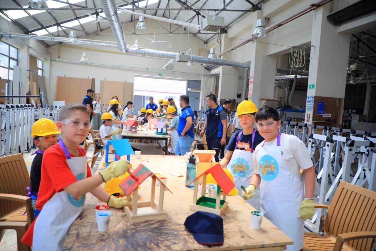 Büyükşehir Belediyesi’nin karne hediyesi olarak düzenlediği kuş yuvası etkinliğinde çocuklar, ahşap malzemeler kullanarak kuşlar için yuva tasarladı. Minikler yaptıkları kuş yuvalarını daha sonra istedikleri gibi boyayıp süsleyerek tamamladı.