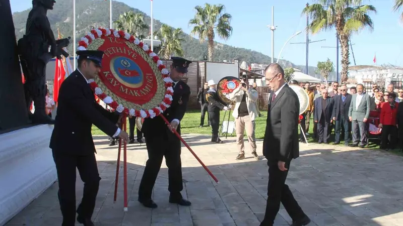 Yılı törenine Fethiye Kaymakamı İsmail Hakkı Ertaş, Belediye Başkan Vekili Bülent Uysal, Garnizon Komutanı Dz. Alb. Dalaman Dz.Hv.Üs Komutanı Okan Mumcu, cumhuriyet Başsavcısı Günşafak Karartı, İlçe Emniyet Müdürü Muzaffer Yüceur, İlçe Jandarma Komutanı Mustafa Çiçek, Sahil Güvenlik Komutanı Burak Akanpınar, Türkiye Muharip Gaziler ve Şehit Aileleri Yardımlaşma ve Dayanışma Derneği Başkanı Ali Cantürk, gaziler ve şehit aileleri, daire amirleri, siyasi parti temsilcileri, öğrenciler ve vatandaşlar katıldı. Törende Fethiye Kaymakamı İsmail Hakkı Ertaş, Belediye Başkan Vekili Bülent Uysal, Garnizon Komutanı Dz. Alb. Dalaman Dz. Hv. Üs Komutanı Okan Mumcu, Türkiye Muharip Gaziler ve Şehit Aileleri Yardımlaşma ve Dayanışma Derneği Başkanı Ali Cantürk Şehitler Anıtı’na çelenk sundular.