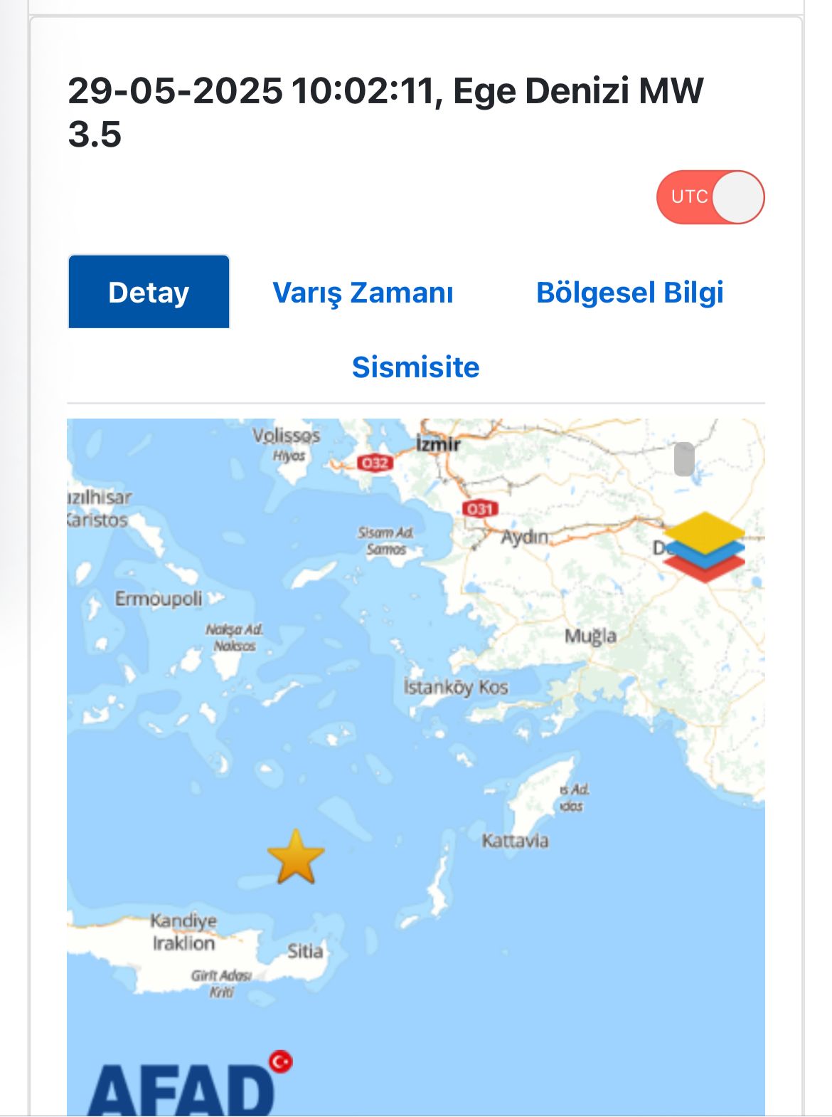 AFAD verilerine göre, sarsıntı bugün saat 13.02’de (TSİ) gerçekleşti. Depremin merkez üssü 35.8083 kuzey enlemi ve 26.0253 doğu boylamı olarak belirlenirken, yerin 24.71 kilometre derinliğinde oluştuğu kaydedildi.