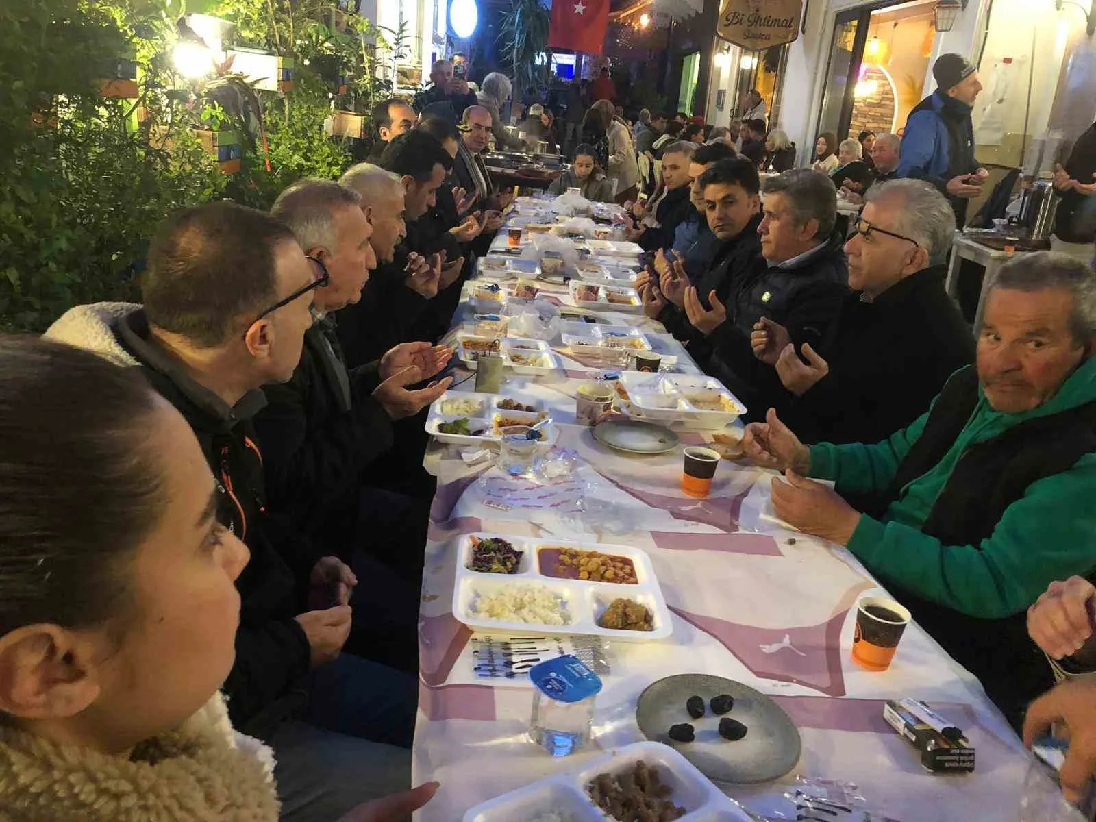Ramazan ayının paylaşma ve dayanışma ruhunu yaşatmak amacıyla 86. Sokak esnafı tarafından organize edilen iftar yemeği, Kur’an-ı Kerim tilaveti ile başladı. Duaların ardından okunan ezanla birlikte vatandaşlar hep birlikte oruçlarını açtı. İftar programına Datça Kaymakamı Murat Atıcı başta olmak üzere, daire müdürleri, siyasi parti temsilcileri, esnaf ve çok sayıda vatandaş katıldı. Kaymakam Atıcı, Ramazan ayının birlik ve beraberliği güçlendiren bir dönem olduğunu belirterek organizasyonu düzenleyen esnafa teşekkür etti. Vatandaşlar ise böyle anlamlı bir organizasyonda bir araya gelmekten memnuniyet duyduklarını ifade etti. Sokak esnafı da Ramazan ayının manevi atmosferini birlikte yaşamanın mutluluğunu paylaştıklarını belirtti.
