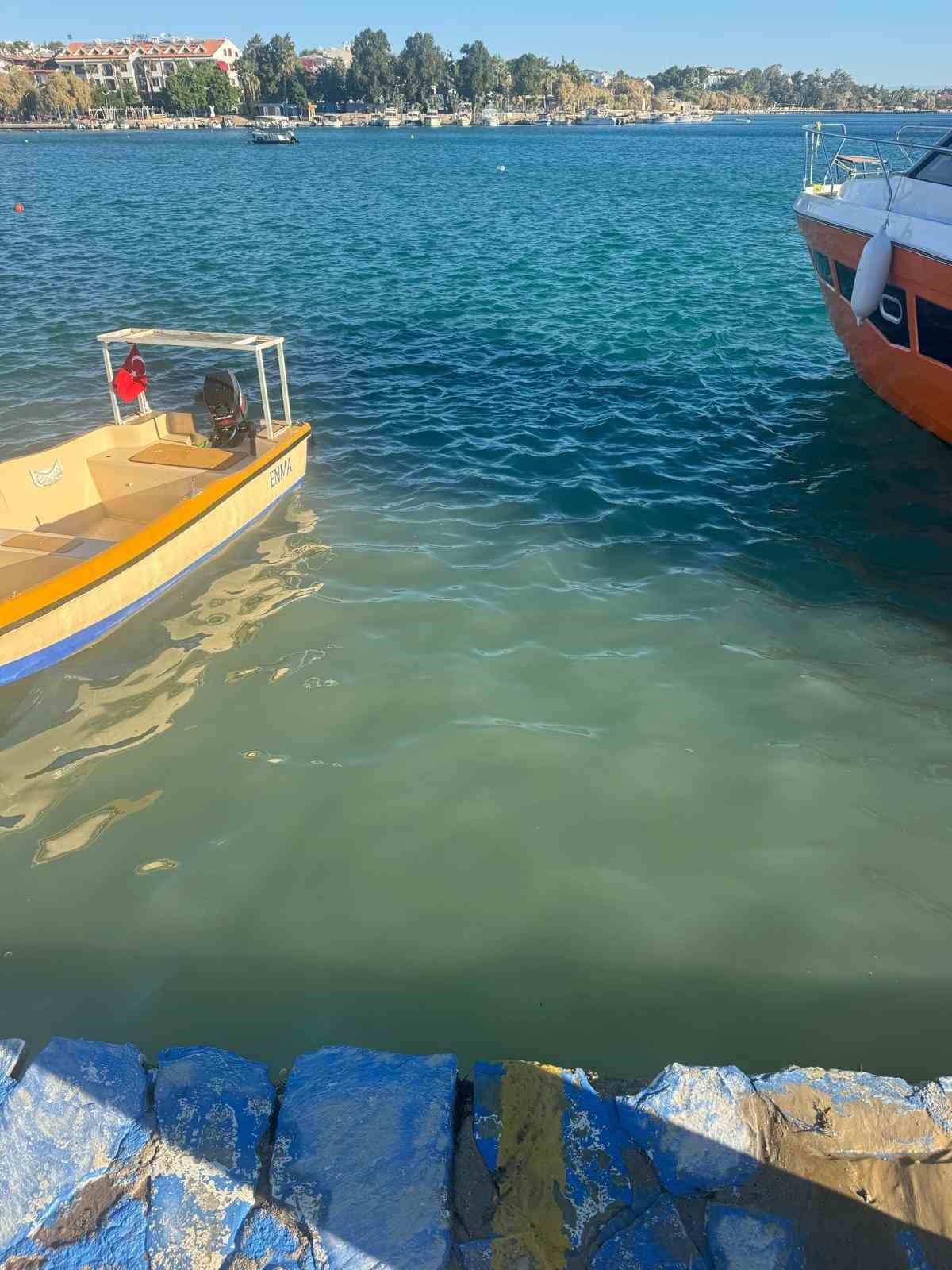 Muğla’nın Datça ilçesinde Atıksu Terfi İstasyonu’nda patlayan borudan akan sular denize ulaşırken denizin rengi değişti.