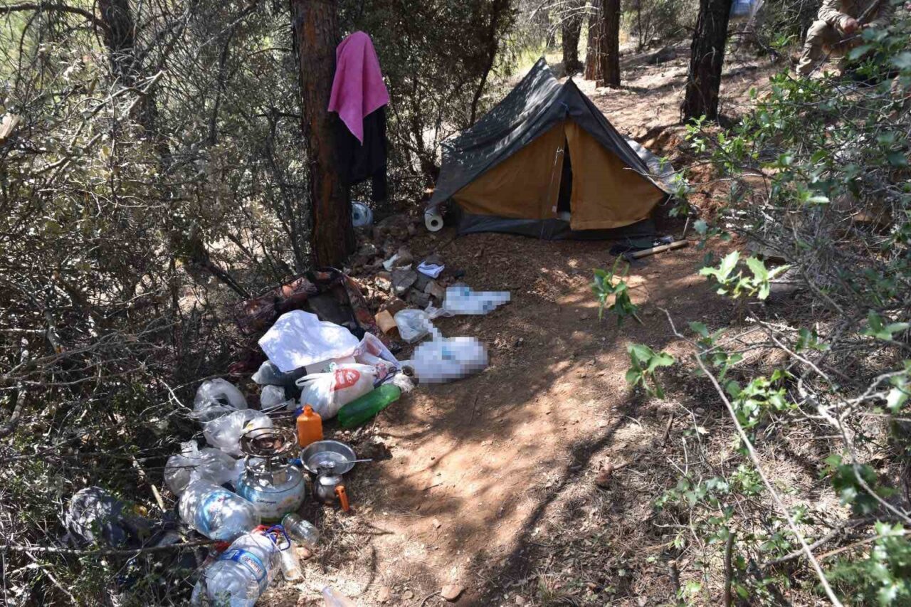 Hakkındaki kararın Aralık 2024’te kesinleşmesinin ardından saklanmak amacıyla ormanlık alana gittiği, saklandığı ormanda kış aylarında soğuktan donmamak için hayvan derisinden kendisine giysi yaparak korunmaya çalıştığı, ekmiş olduğu kenevirleri yaban hayvanlardan korumak için çevresine ayı kapanı tuzağı kurduğu ve yakalanmamak amacıyla dürbünle çevresini sürekli gözetlediği tespit edildi.