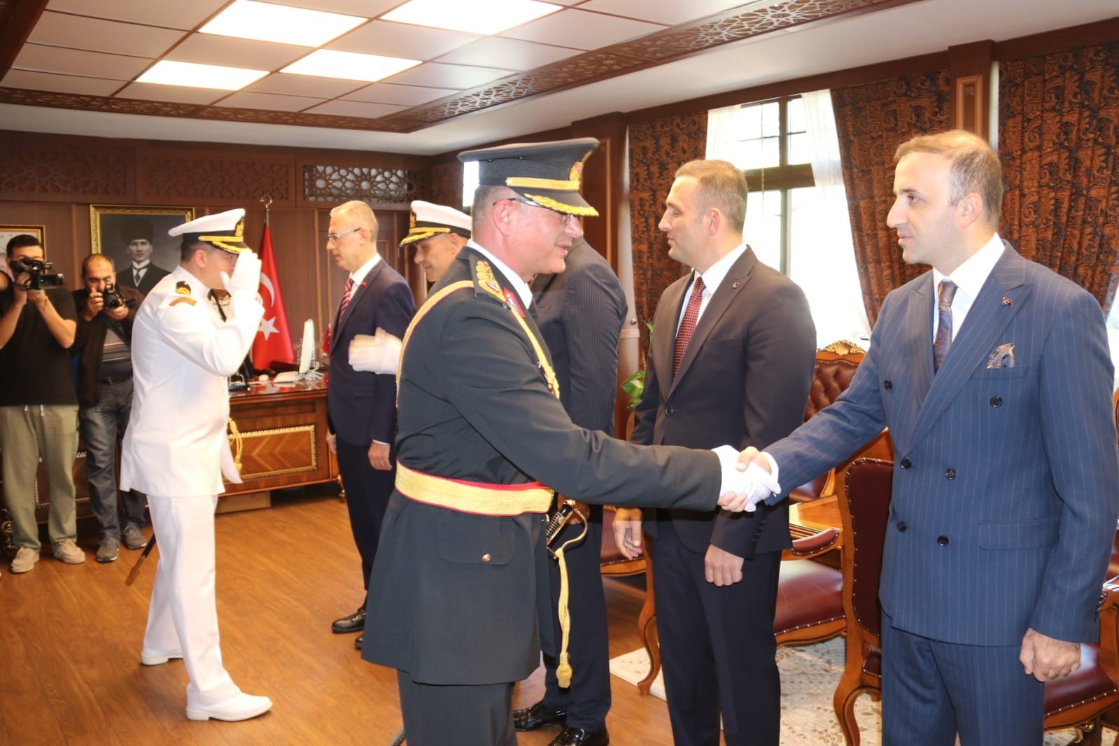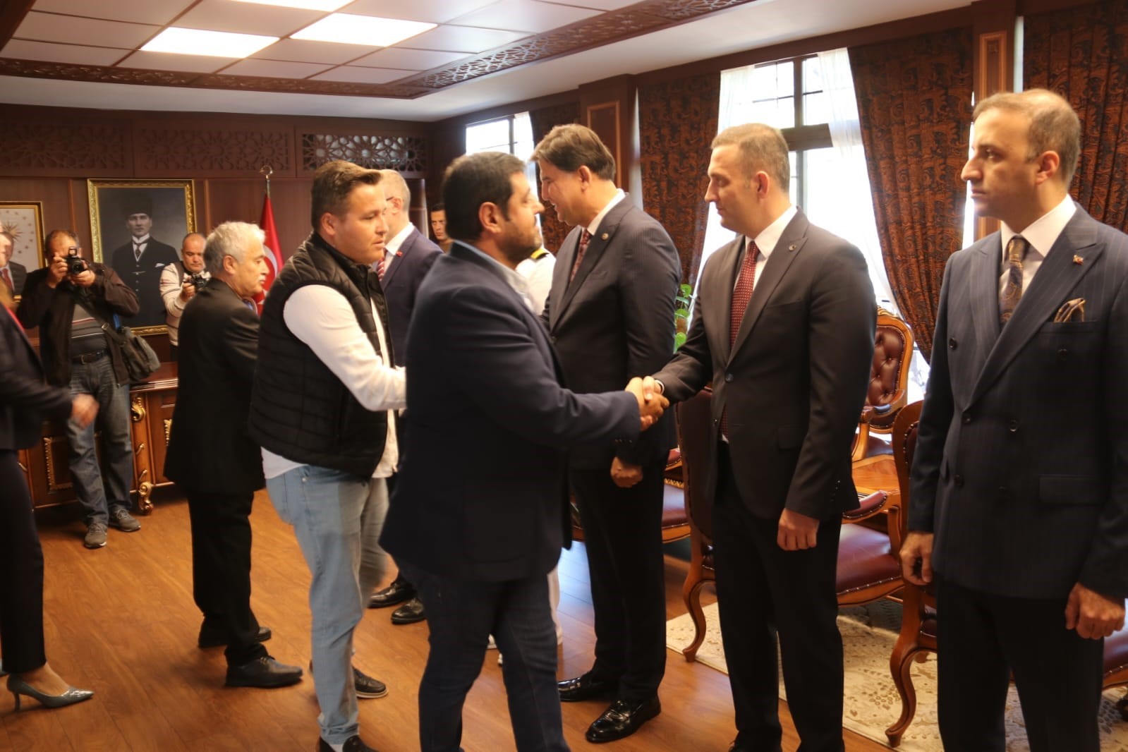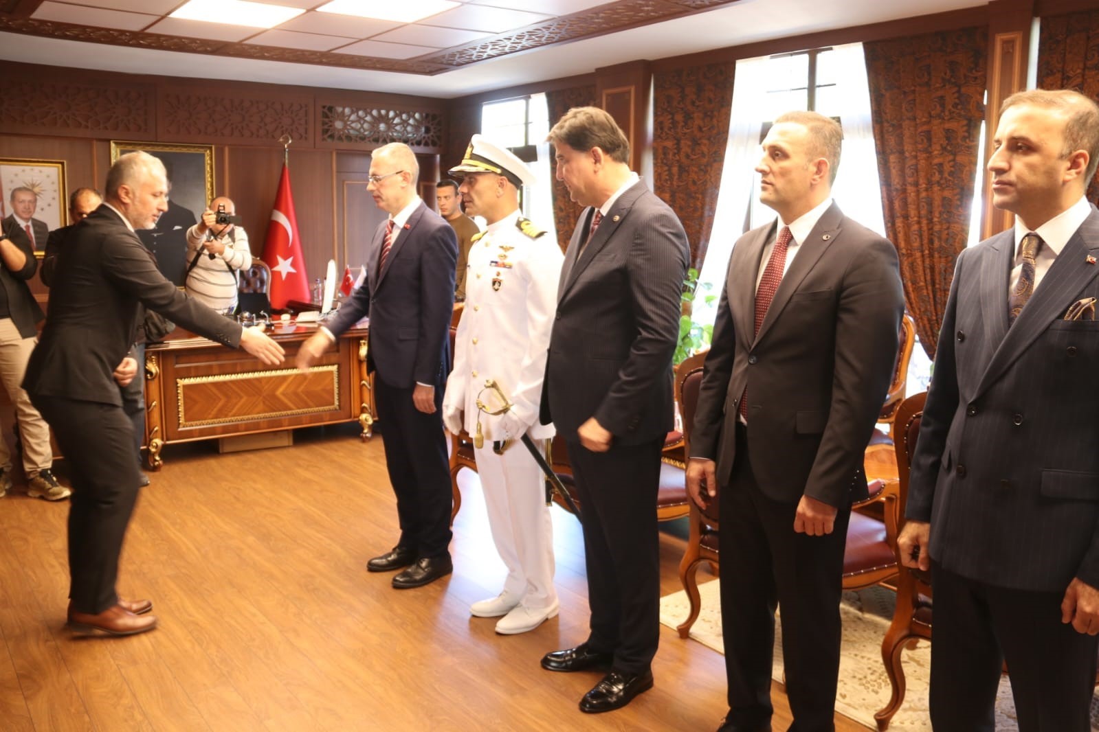 29 Ekim Cumhuriyet Bayramı nedeniyle Fethiye Kaymakamlığı’nda yapılan tebrikleri kabul töreninde Kaymakam İsmail Hakkı Ertaş beraberinde Garnizon Komutanı Dz. Albay Emre Ahmet İnal, Fethiye Cumhuriyet Başsavcısı Günşafak Karartı ve Fethiye Adalet Komisyonu Başkanı Erdem Oğuz Özer ile birlikte kabul etti.