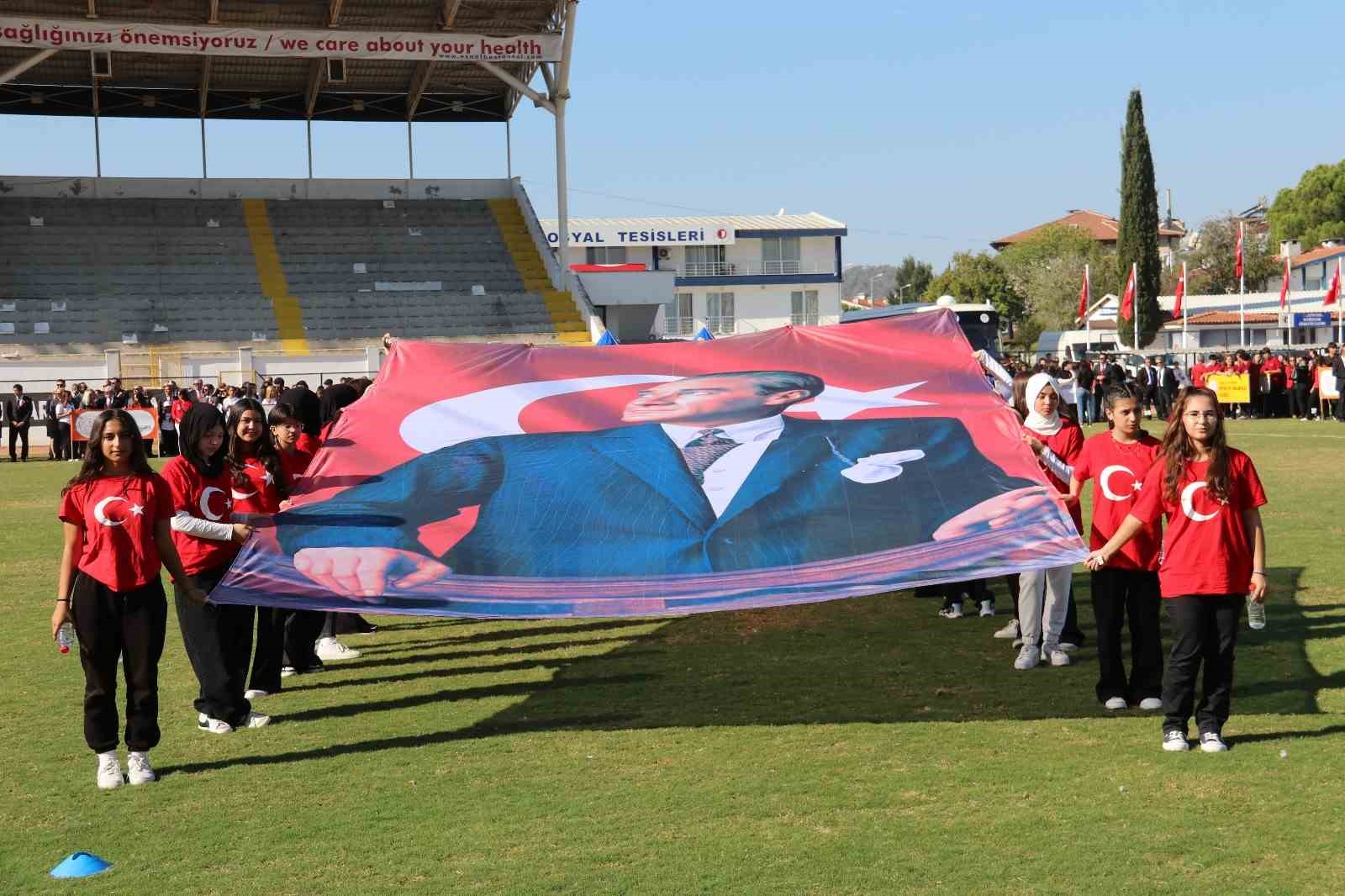 Fethiye Şehir Stadı’ndaki 29 Ekim Cumhuriyet Bayramı’nın 101. Yıldönümü törenine Fethiye halkı yoğun ilgi gösterirken, tören boyunca ellerinde Türk bayraklarıyla cumhuriyet Bayramı coşkusuna katıldı. Törende ilk olarak Fethiye Kaymakamı İsmail Hakkı Ertaş ve Garnizon Komutanı Dz. Alb. Emre Ahmet İnal halkın ve öğrencilerin bayramını kutladılar. Törende cumhuriyetin kurucusu Ulu Önder Mustafa Kemal Atatürk ve tüm şehitler için saygı duruşunda bulunulup, İstiklal Marşı okundu.