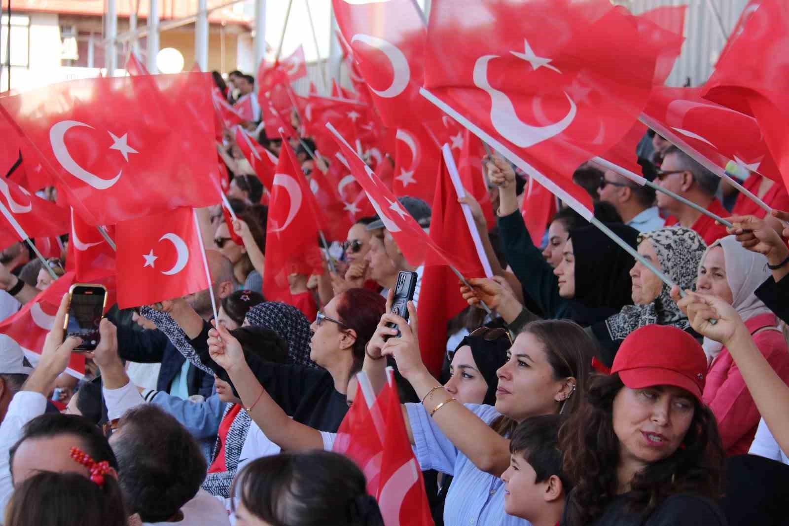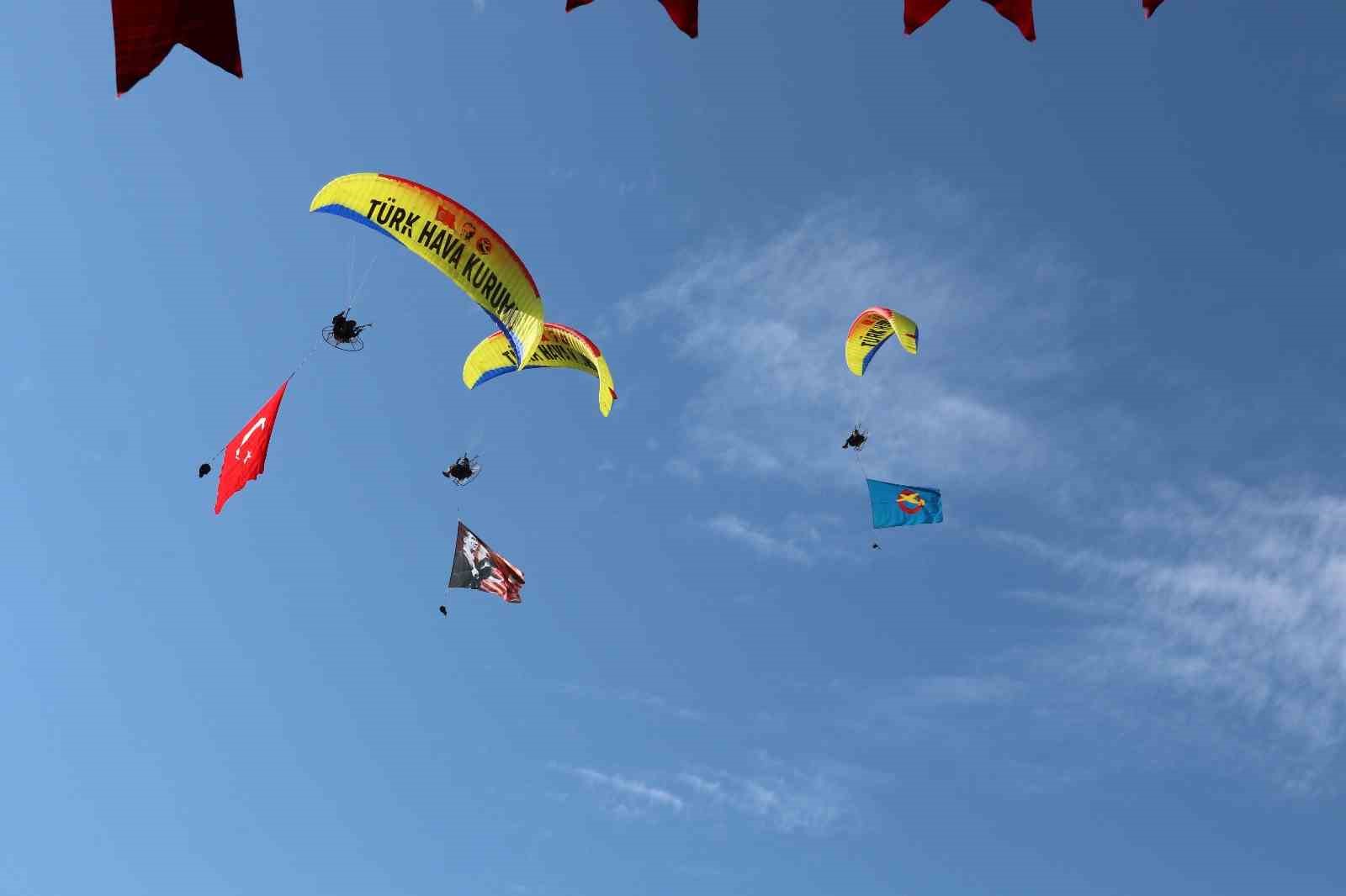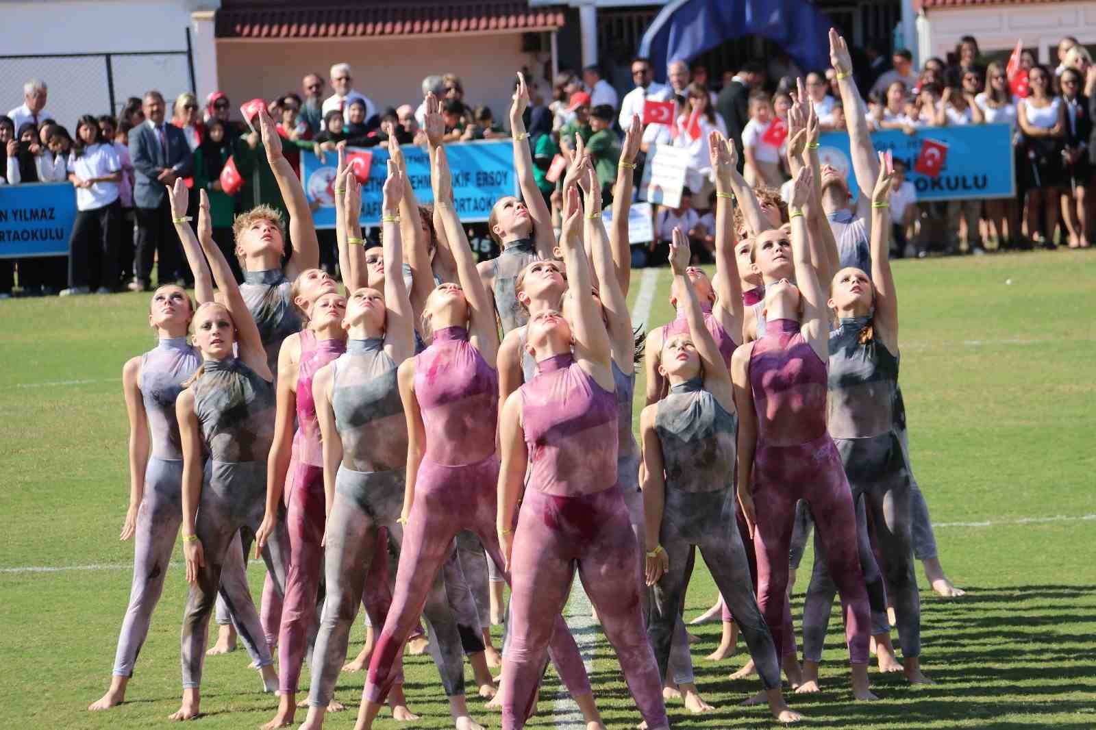 Törende Gülşen Gökçe Spor Lisesi öğrencilerinin bireysel hareketleri yoğun alkış alırken, ekibin Türk Bayraklı gösterisi de hayranlıkla izlendi. Güneşli ve güzel bir havadaki törende Türk Hava Kurumu paramotor gösterileri 10. Yıl Marşı eşliğinde muhteşem bir gösteri sundu.