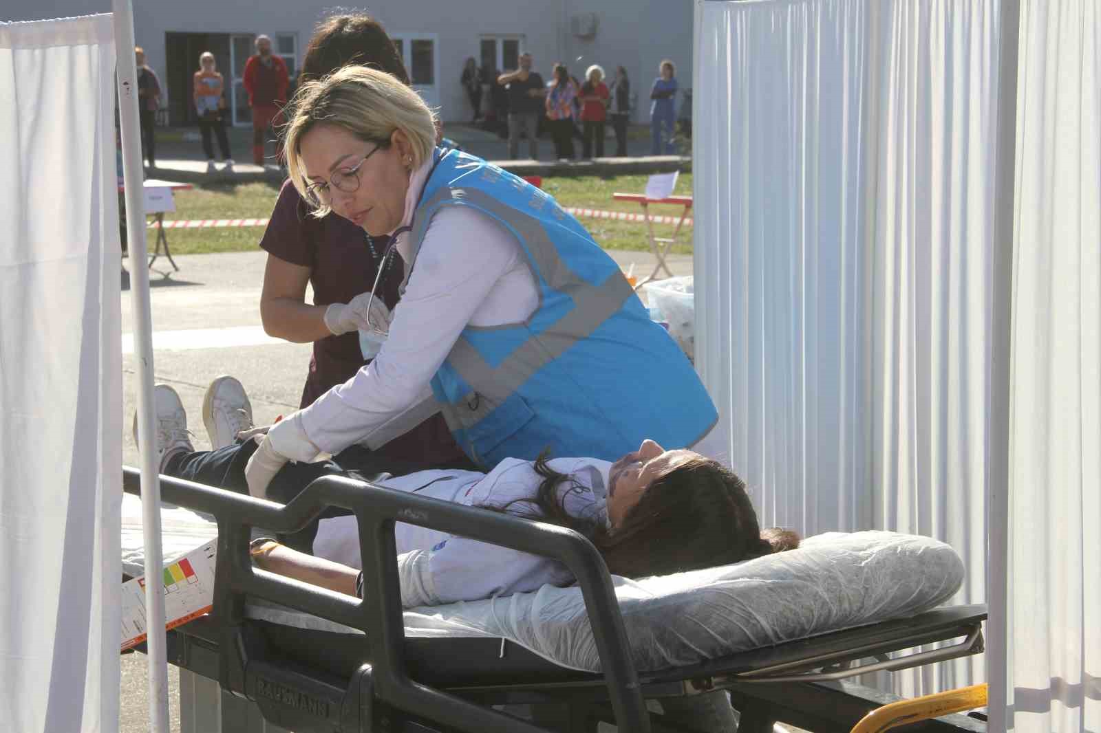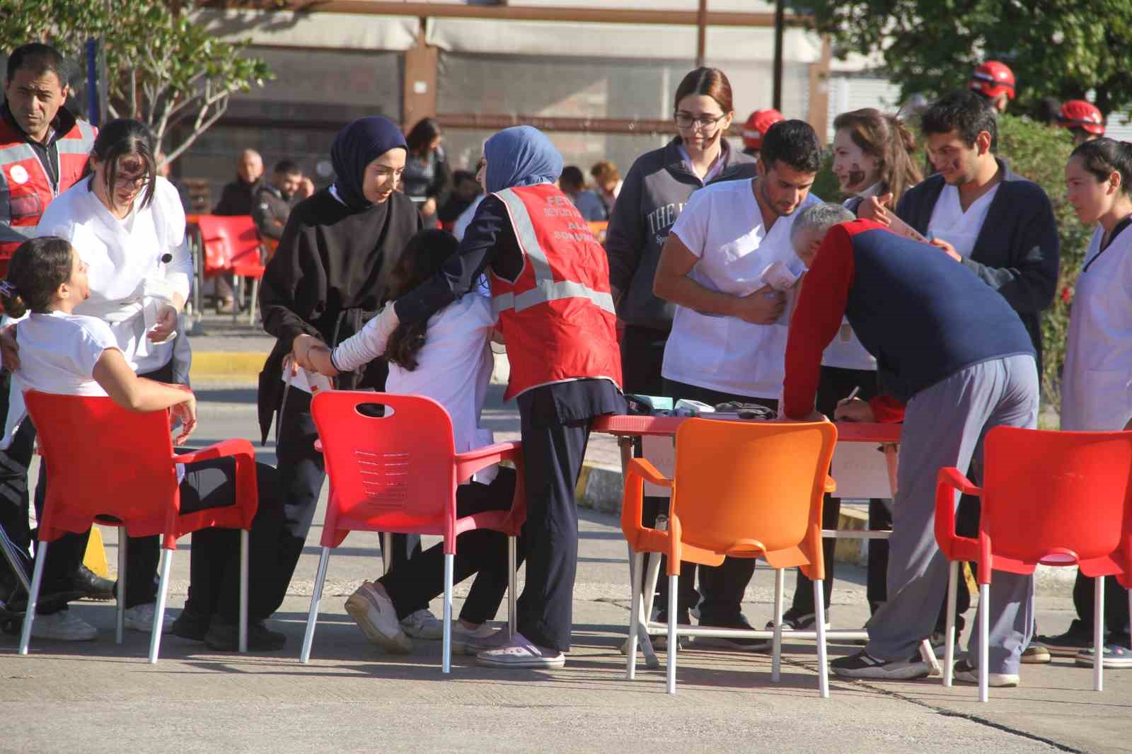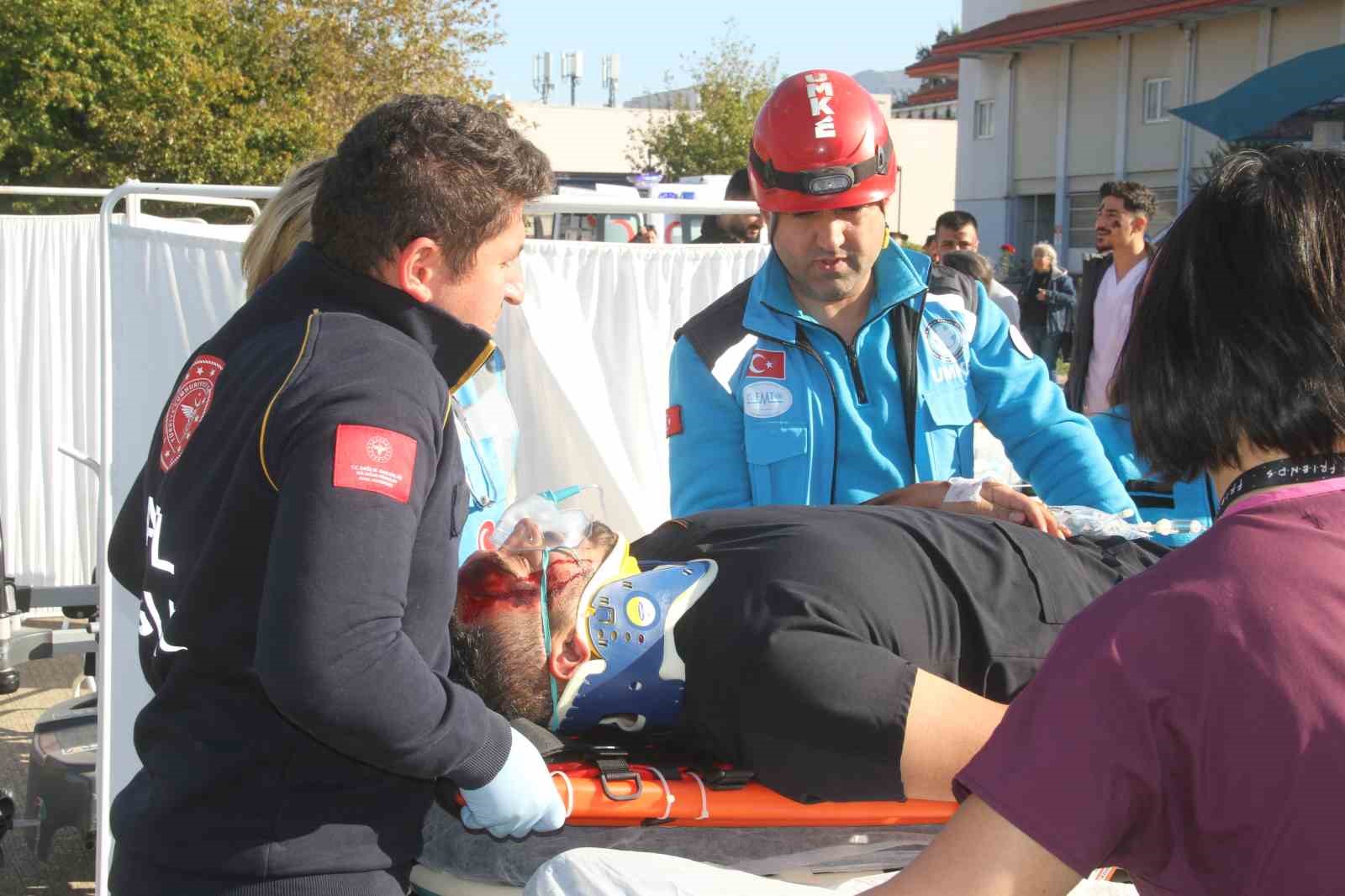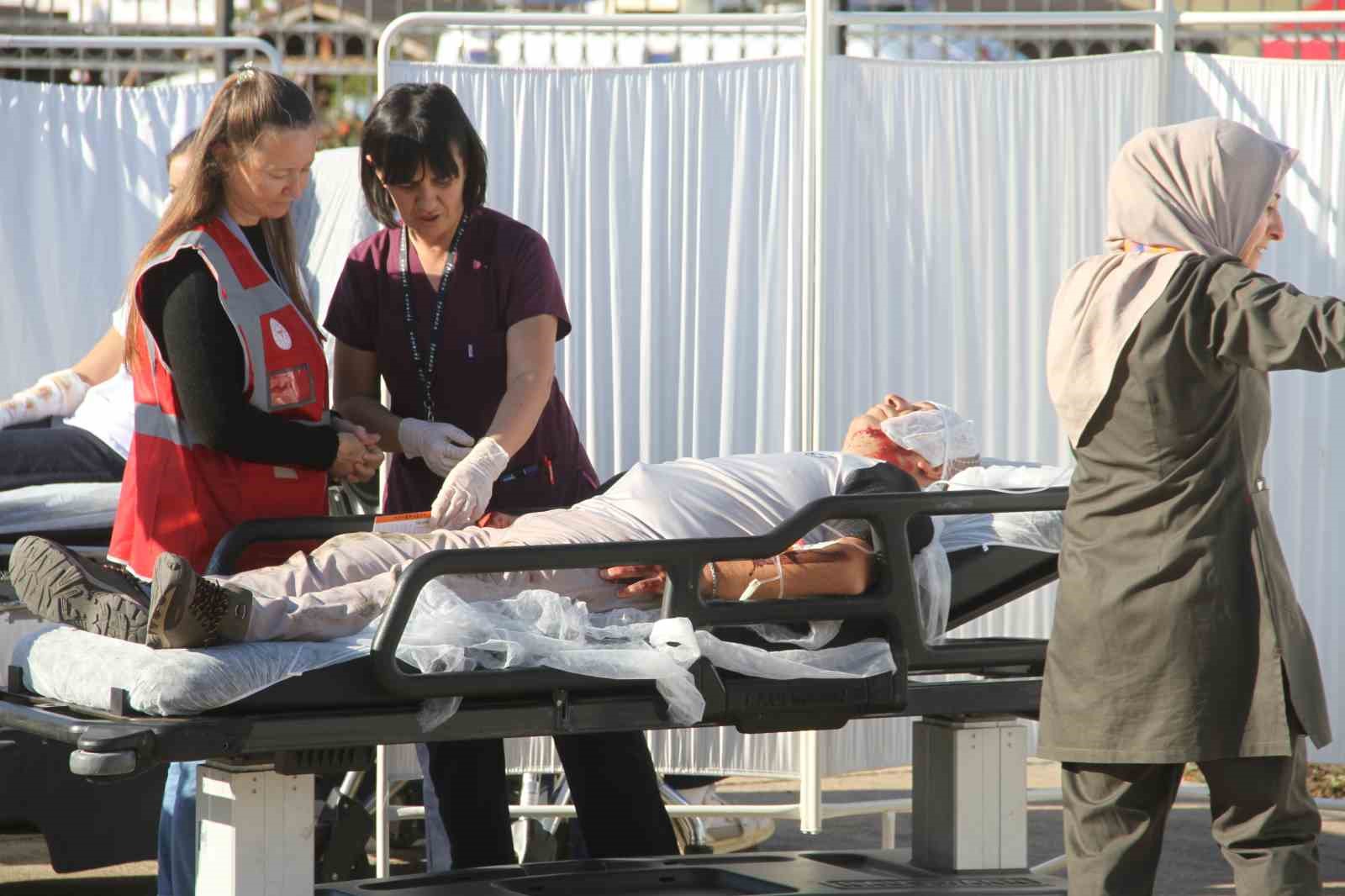 Tatbikat kapsamında yaralılar ambulanslar ve minibüslerle Fethiye Devlet Hastanesi’ne sevk edildi. Bölgede kurulan triaj alanında olaydan etkilenen öğrenciler ve görevler muayene edilecekleri alanlara yönlendirildiler. UMKE ekibinin de destekleri ile yaralıların kısa sürede tedavilerine başlanırken; tatbikat gereği 24 kişinin hafif, 4 kişinin orta, 4 kişinin de ağır yaralı olduğu belirtildi. 4 ağır yaralının ise 3’ünün hayatını kaybettiği bilgisi aktarıldı. Ekipler kısa sürede hastaların tedavisinin yapılması adına özverili bir çalışma yürüttü.