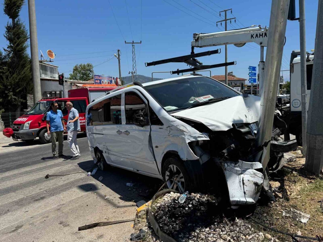 Alınan bilgilere göre; Turgut A’nın kullandığı 48 TZ 024 plakalı minibüs, Fethiye-Muğla kara yolu Çatalarık Kavşağı’ndaki trafik ışıklarında, Meryem İ. idaresindeki 48 PN 770 plakalı hafif ticari araçla çarpıştı. Kazada savrulan minibüs kavşaktaki yönlendirme tabelasına çarparak durabildi. Çevredekilerin 112 Acil Çağrı Merkezi’ne ihbarı üzerine olay yerine çok sayıda sağlık, itfaiye ve polis ekibi sevk edildi. Kazada sürücüler ile aralarında yabacı uyruklu ve çocukların da olduğu toplam 11 kişi yaralandı.