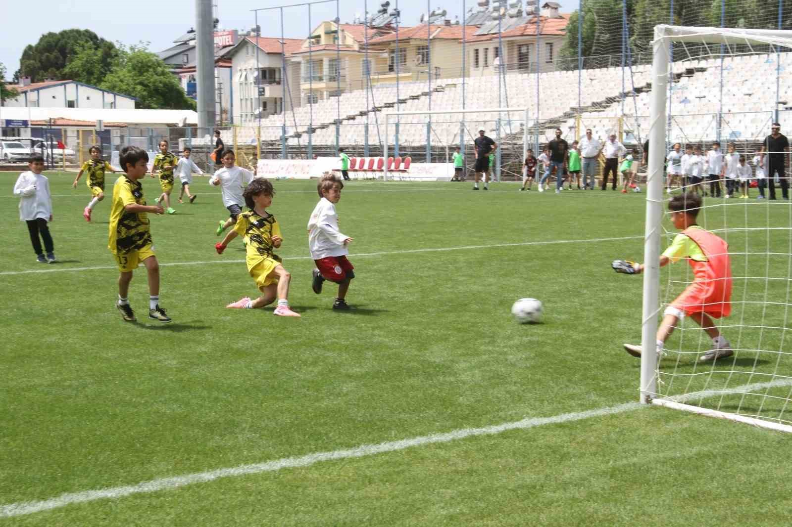 Fethiyespor’un geleceğin yıldızlarını keşfetmek amacıyla düzenlediği futbol turnuvası, Fethiye Kaymakamı İsmail Hakkı Ertaş ve Fethiyespor Kulüp Başkanı Esat Bakırcı’nın başlama vuruşuyla start aldı. Turnuvaya 17 farklı okuldan 7-11 yaş aralığında toplam 600 öğrenci katılıyor. Turnuvanın açılış törenine Fethiye Kaymakamı İsmail Hakkı Ertaş, Fethiyespor Kulüp Başkanı Esat Bakırcı, Fethiye İlçe Gençlik ve Spor Müdürü Harun Reşit Yiğit ve Fethiyespor Teknik Direktörü Selahattin Dinçel ve Fethiyespor yönetim kurulu üyeleri katıldı. Kaymakam Ertaş, “Burada esas önemli olan, sporu yaymak ve gençleri kötü alışkanlıklardan uzak tutmak” derken, Kulüp Başkanı Bakırcı, “Çocuklarımızı sporla buluşturmak en büyük hedefimiz,” dedi. Teknik Direktör Selahattin Dinçel ise turnuvanın geleneksel hale getirilmesinin planlandığını belirtti. Fethiye Kaymakamı İsmail Hakkı Ertaş, açılışta yaptığı konuşmada organizasyonun amacına dikkat çekerek, “Bugün çok güzel bir görüntü var. Gençlik ve Spor Müdürlüğümüz, Milli Eğitim Müdürlüğümüz hep beraber Fethiyespor’un öncülüğünde bir turnuva düzenliyorlar. Çok küçük çocuklarımız burada takımlar halinde yarışacak. Amacımız tabii ki yarışmaları desteklemek. Fakat burada esas önemli olan, sporu yaymak, gençler arasında özendirmek ve onları kötü alışkanlıklardan korumak. Fethiyespor’umuz burada çok güzel ve önemli bir görev icra ediyor. Onlara çok teşekkür ediyorum. Spor Müdürlüğümüze, Milli Eğitim Müdürlüğümüze teşekkür ediyorum.