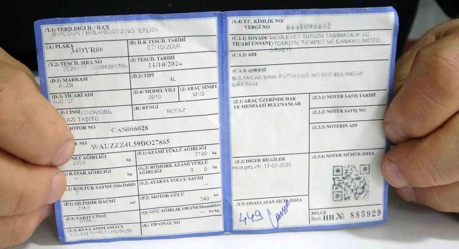 Giresun’un Bulancak ilçesinde galeriden noter satışıyla satın aldığı ve yaklaşık bir yıldır sorunsuz kullandığı Audi Q7 marka lüks cipine, gümrük tarafından çıkarılan yakalama kararı nedeniyle el konulan iş adamı şaşkınlık yaşadı. Daha önce 19 kez satışı yapıldığı öğrenilen araç, polis kontrolünde yediemin otoparkına çekildi.