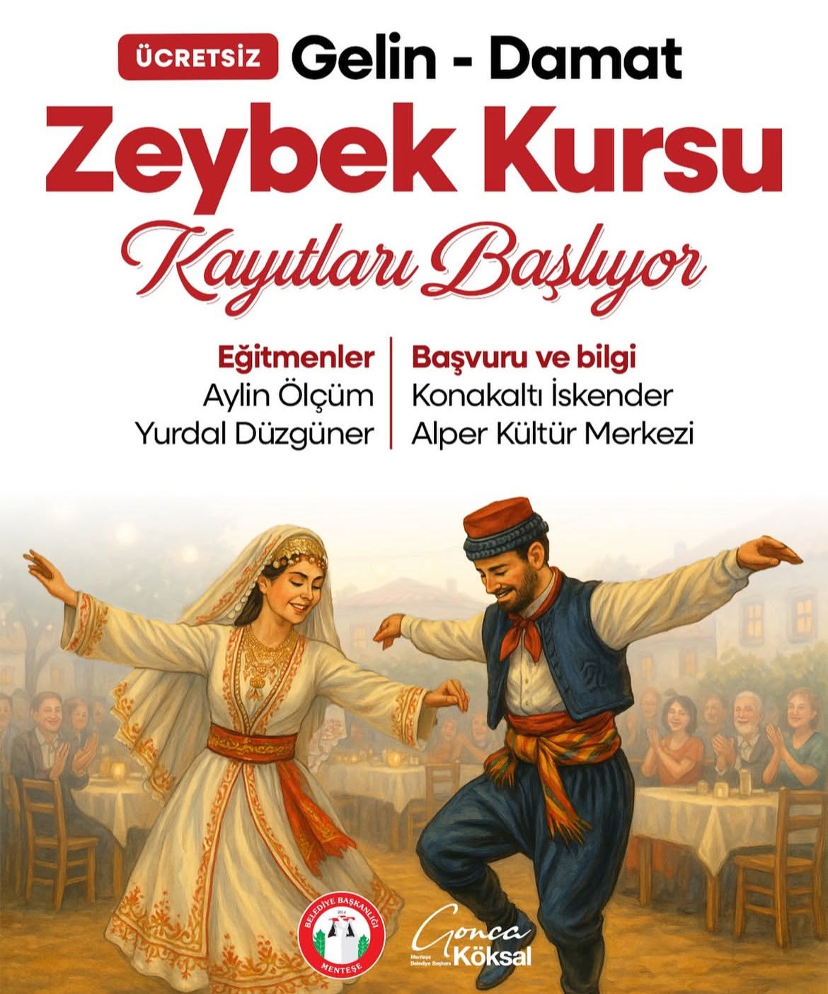 Menteşe Belediyesi, geleneksel kültürü yaşatmak ve özel günlere anlam katmak amacıyla yeni bir sosyal projeyi hayata geçirdi. Evlilik hazırlığında olan çiftler için düzenlenen ücretsiz Gelin-Damat Zeybek Kursu kayıt almaya başladı.