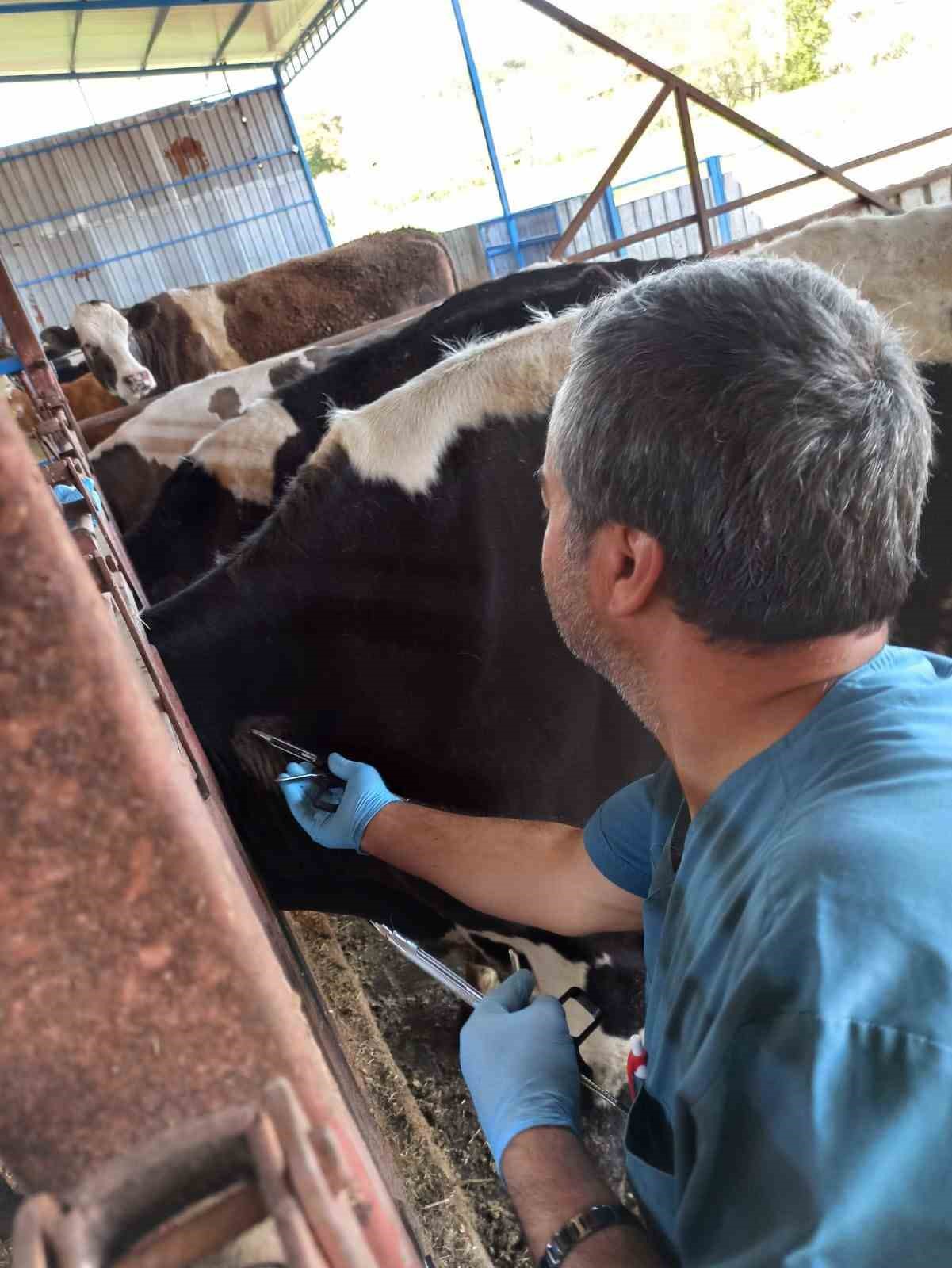 Uygulama sırasında büyükbaş hayvanlara tüberkülin maddesi enjekte edilerek, verem (tüberküloz) hastalığına karşı bağışıklık tepkisi gözlemleniyor.
