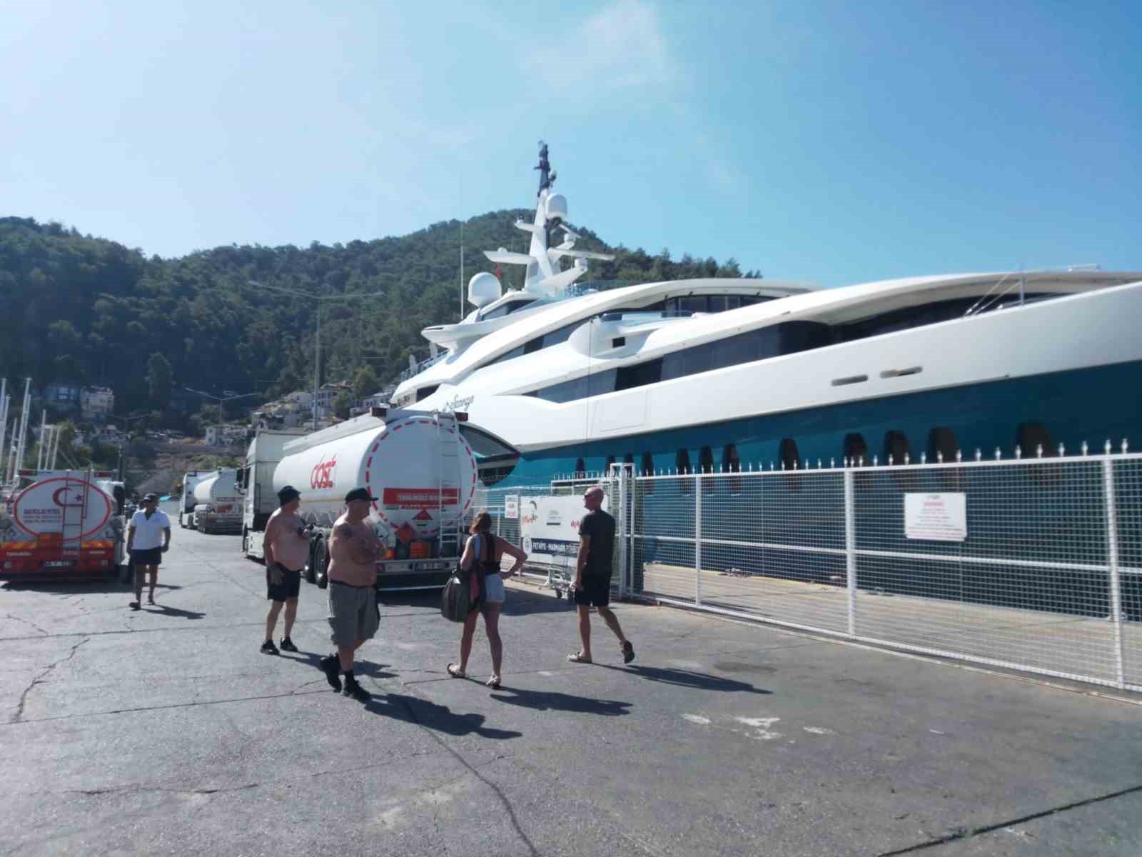 Fethiye Limanı İskelesi’ne bağlanan Cayman Adaları bayraklı 86 metre uzunluğunda ve 14 metre genişliğindeki lüks mega yata İzmir Aliağa Rafinerisi’nden getirilen 260 bin litre akaryakıt karadan ikmal edildi. Hintli milyarder Ravi Ruia’ya ait mega yatı Fethiye İskelesi’nde gören yerli ve yabancı turistler bol bol fotoğraf çekerken, göz kamaştıran mega yatta 25 görevli personel gün boyu temizlik yaptı.