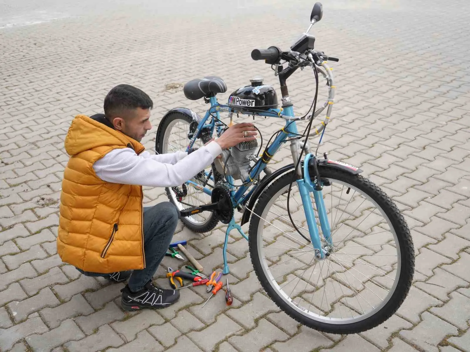 İkinci el bisiklet satın aldı, topladığı malzemelerle mobilete çevirdi