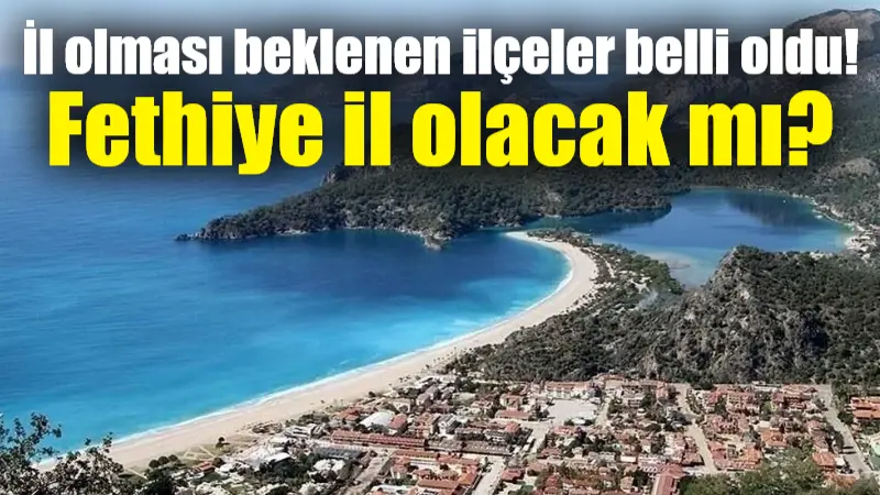 İl olma şartlarını karşılayan ilçeler listesi açıklandı. Açıklanan listede uzun yıllardır il olup, olmayacağı tartışılan ve Tüik şartlarını karşılayan Muğla’nın Fetiye ilçesi de yer aldı.100 bin nüfusu ve il merkezine 30 kilometre uzaklığı olan ilçeler, il olabilmek statüsünde yer alıyor. Bu şartların yanı sıra ekonomik kriterler de dikkate alınıyor.