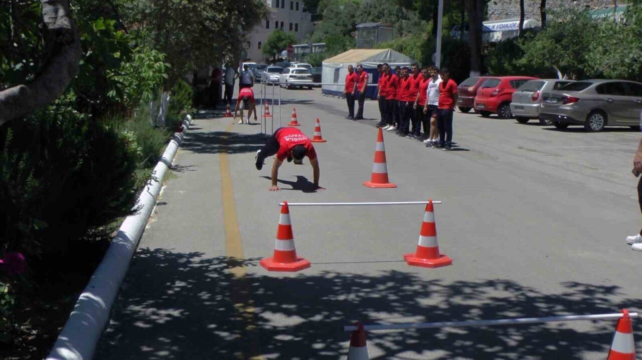 Muğla Büyükşehir Belediyesi İtfaiye Dairesi Başkanlığı merkez yerleşkesinde kurulan özel parkur alanında gerçekleştirilen bu testler, itfaiyecilerin mesleki dayanıklılıklarını ve fiziksel kapasitelerini ölçme açısından büyük önem taşıyor.