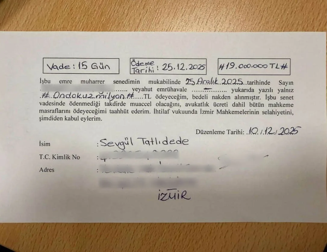 Ancak olayın asıl yüzü günler sonra ortaya çıktı. Sevgül Tatlıdere, evine gelen bir icra tebligatı ile hayatının şokunu yaşadı. Eline ulaşan evrakı inceleyen Tatlıdere, istasyonun satış bedeli olan 19 milyon TL değerinde bir kambiyo senedi (bono) düzenlendiğini gördü. Senette kendi kişisel bilgilerinin yer aldığını ve imzasının taklit edildiğini fark eden kadın, dolandırıcıların hedefi olduğunu anladı. Büyük bir hayrete düşen ve neye uğradığını şaşıran Sevgül Tatlıdere, daha önceden planladığı Amerika seyahatini apar topar iptal etti. Vakit kaybetmeden savcılığa giden Tatlıdere, evrakın tamamen sahte olduğunu belirterek şikayetçi oldu. Bu işin organize bir çete tarafından planlandığını öne süren talihsiz kadın, sorumluların cezalandırılmasını istedi.