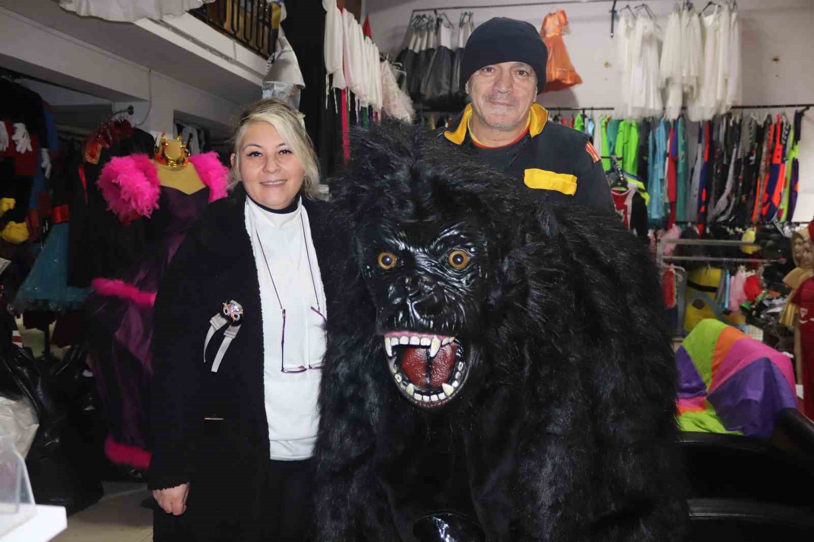 Konak ilçesinde bulunan Tarihi Kemeraltı Çarşısı’nda 32 yıldır kostümcülük yapan Serdar Özalp (50), ilgi çekici kostümleri temin ediyor ve ardından o kostümleri kendisi de deniyor.