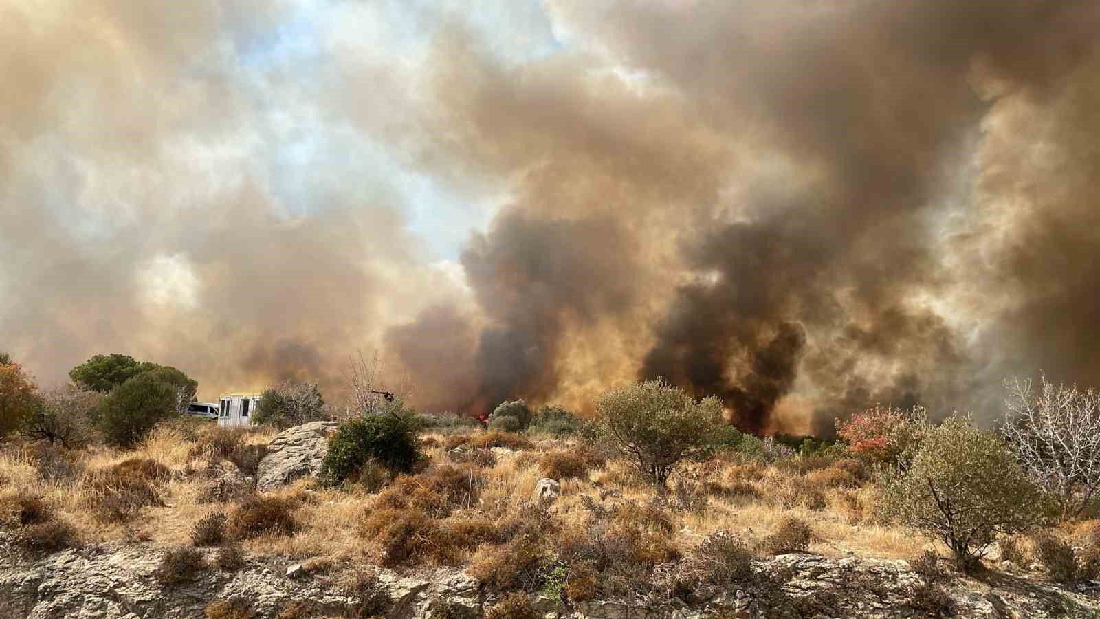 İzmir’in Foça ilçesinde çıkan orman yangınına havadan ve karadan müdahale ediliyor.