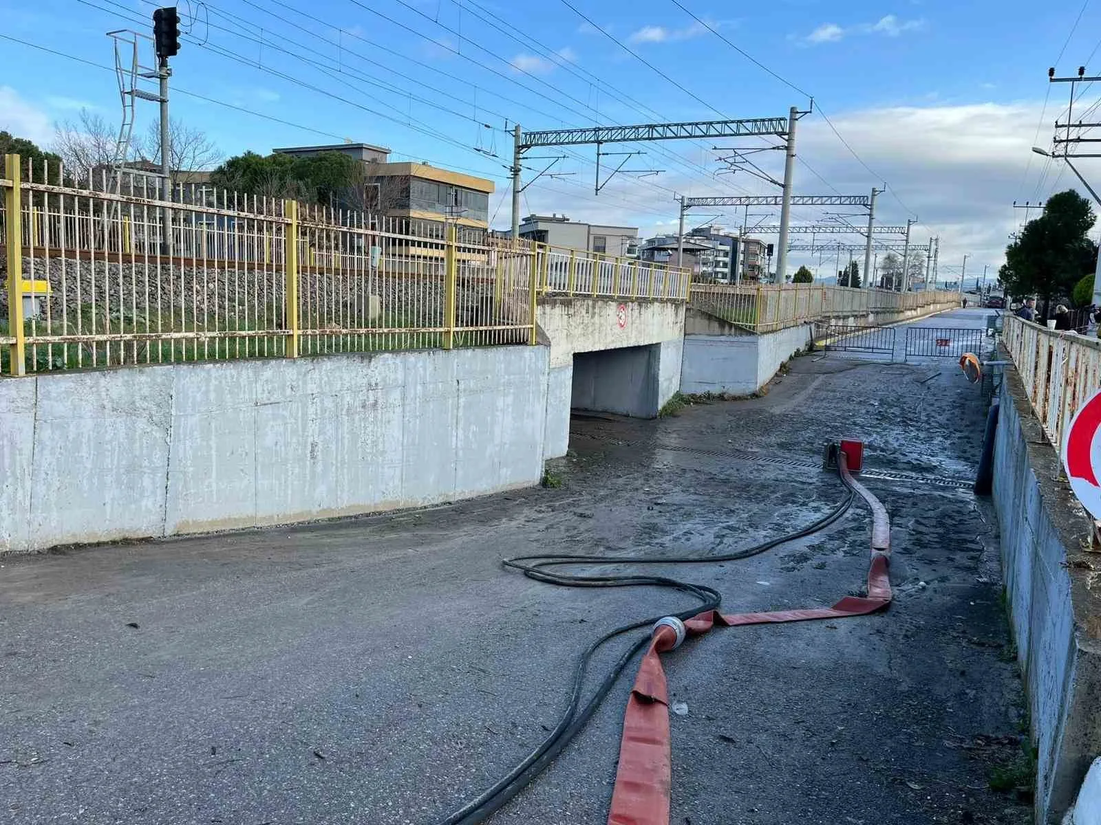 Acı olayın yaşandığı alt geçitte suyun tahliye edildiği, çalışmaların ise sürdüğü görüldü. Jandarma ekiplerinin olayla ilgili başlattığı inceleme sürüyor.